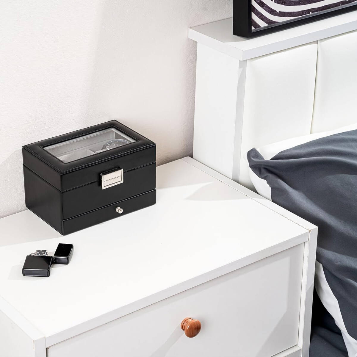 天板がガラス製の蓋なので、お気に入りの腕時計を見せて収納できるのもうれしいポイント。