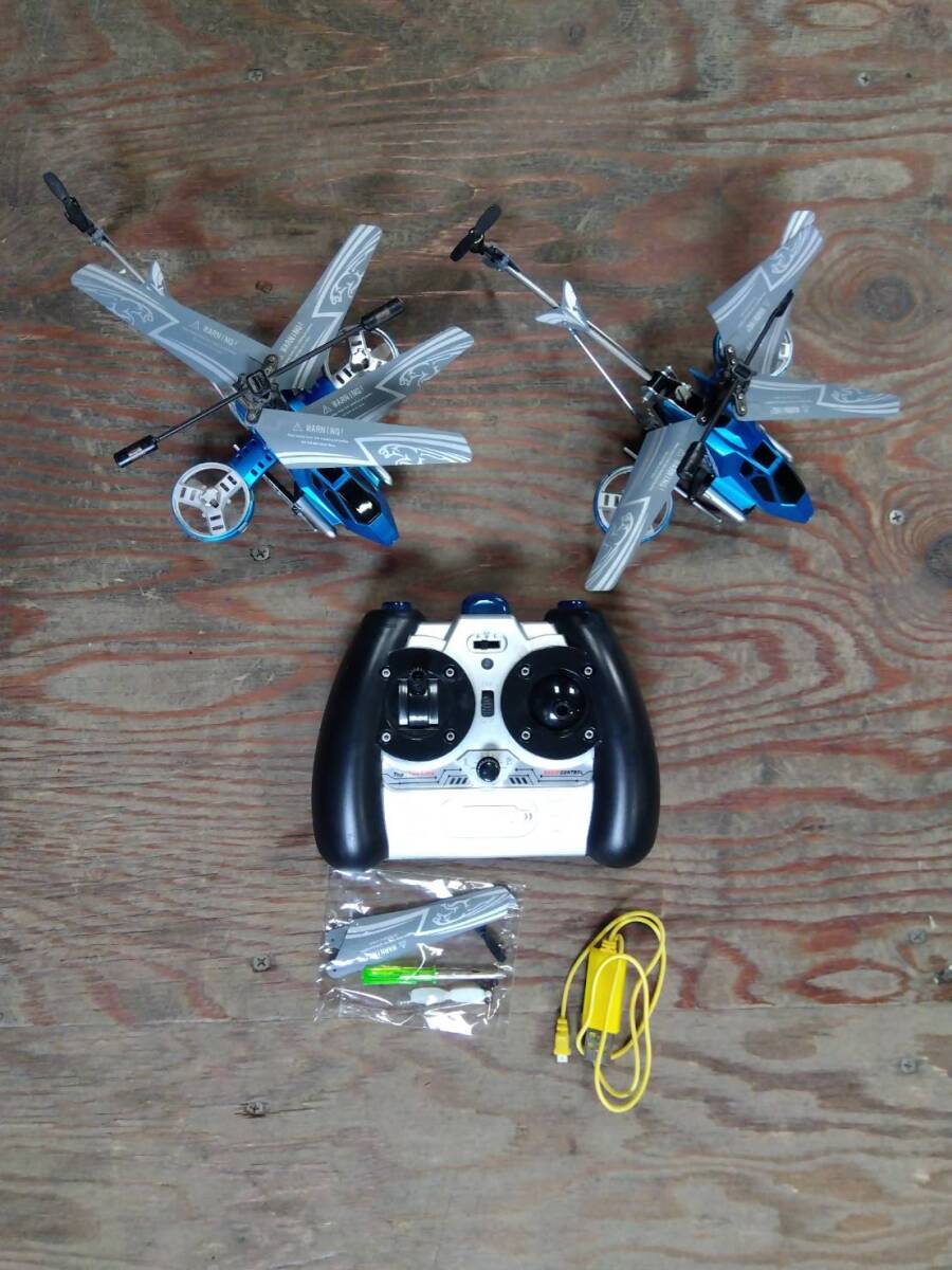 1円スタート ジャンク ヘリコプター ラジコン ジャイロ 2台セット 青 my-2324-5