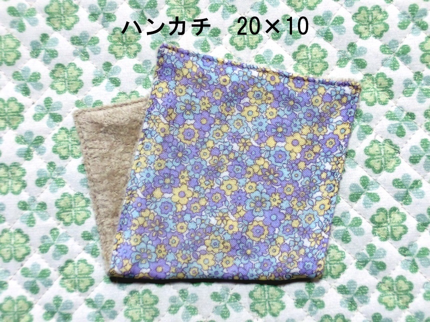 ポケットに収まりやすい、ハンドメイド・長方形20×10センチのダブルガーゼ&タオルのハンカチです。