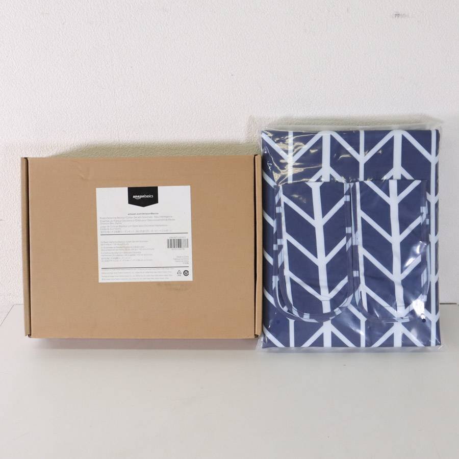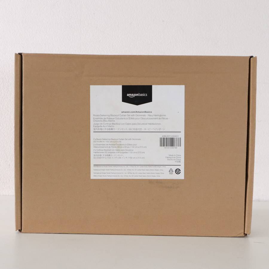 新品 Amazon basics 132×213cm 暗幕カーテン 2枚 ハトメ付き ネイビーヘリンボーン 竿通しタイプ☆198h19