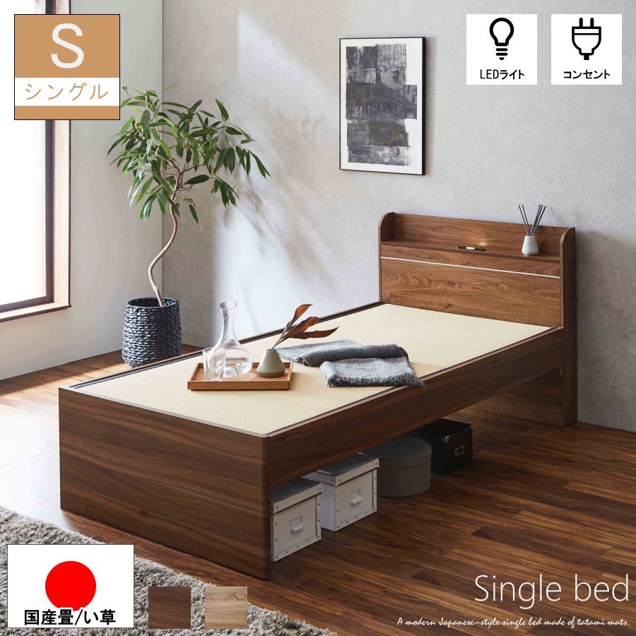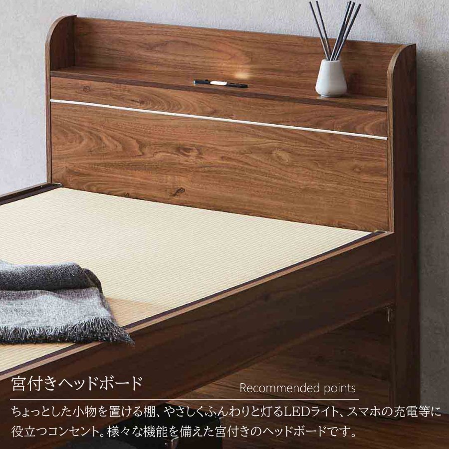 ◆ 商品名 | 畳ベッド シングルベッド 国産畳 棚 LEDライト コンセント 宮付き 13S |