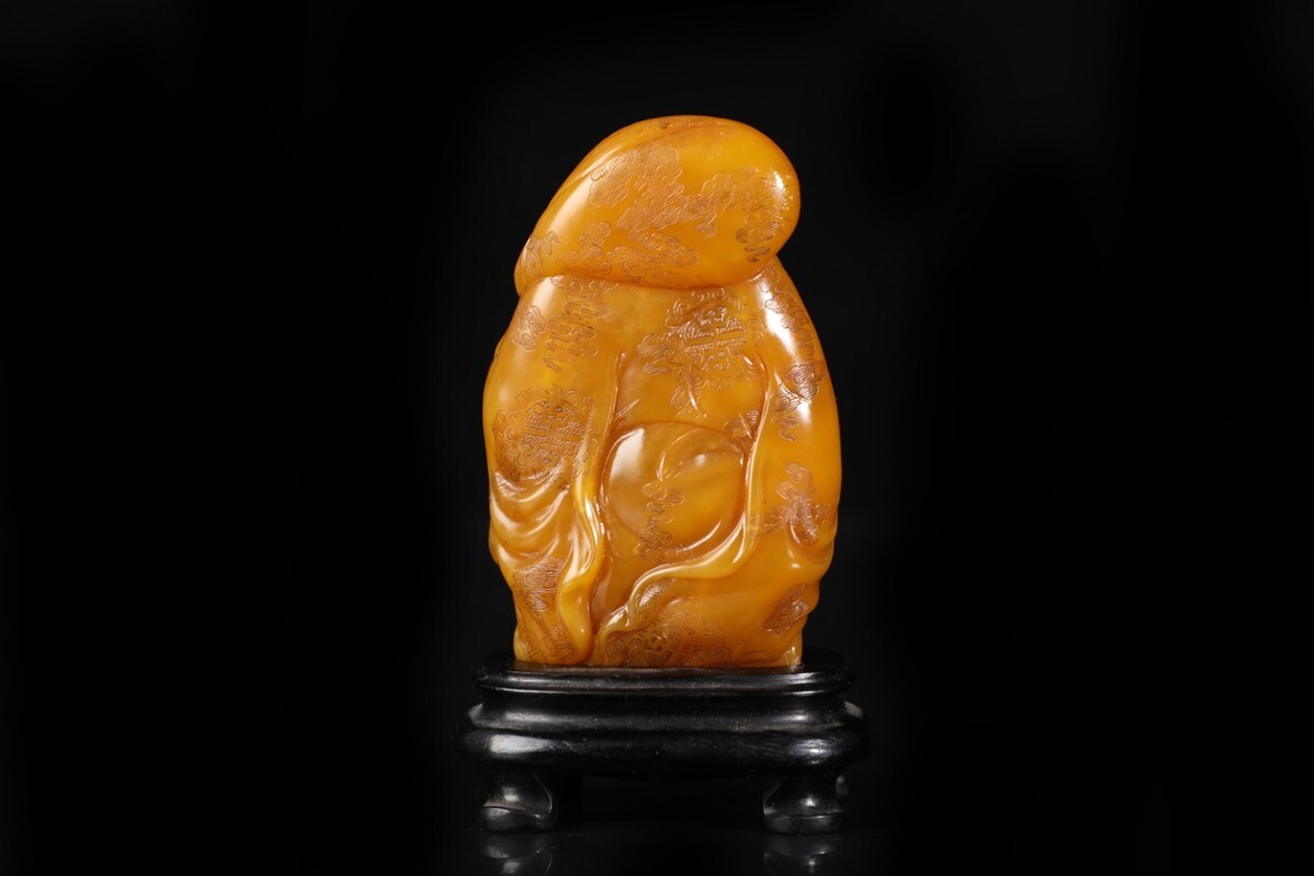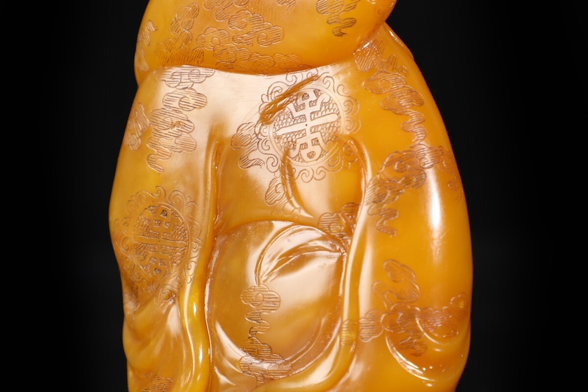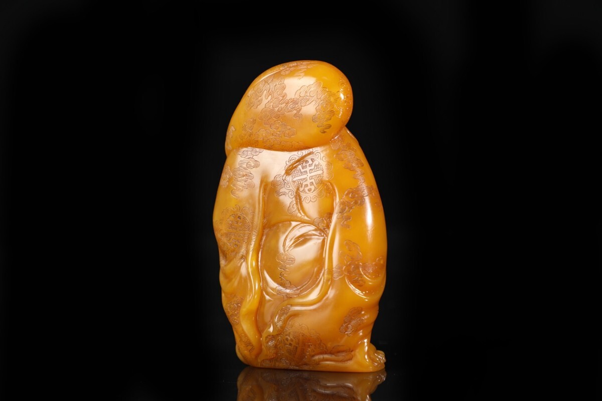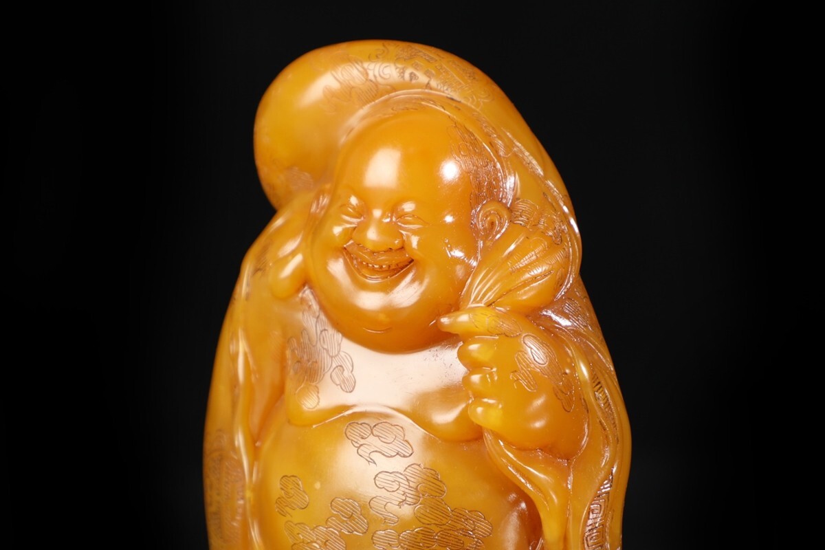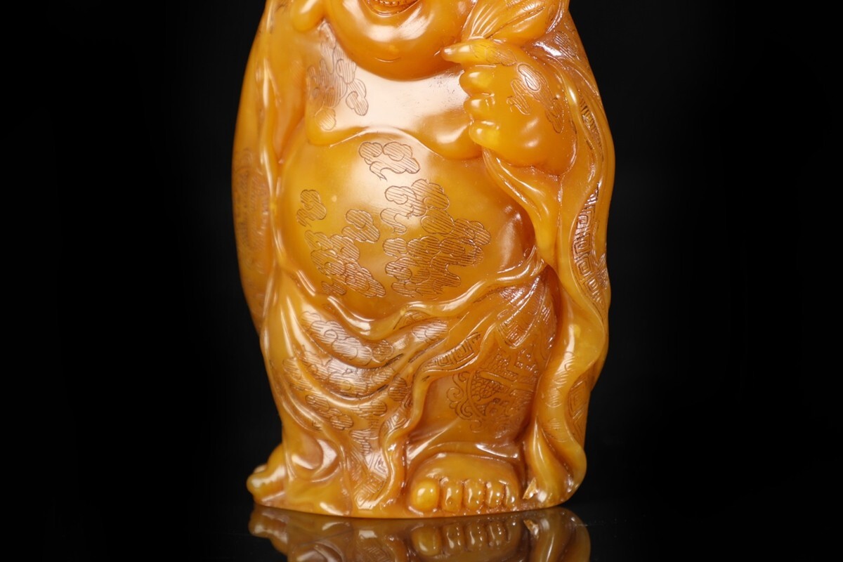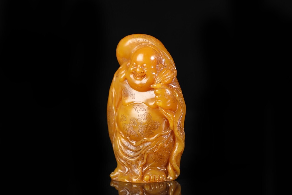 「清時代 老寿山石 田黄石彫り 布袋弥勒仏造像」極細工 擺件 古賞物 中国古美術 旧蔵出