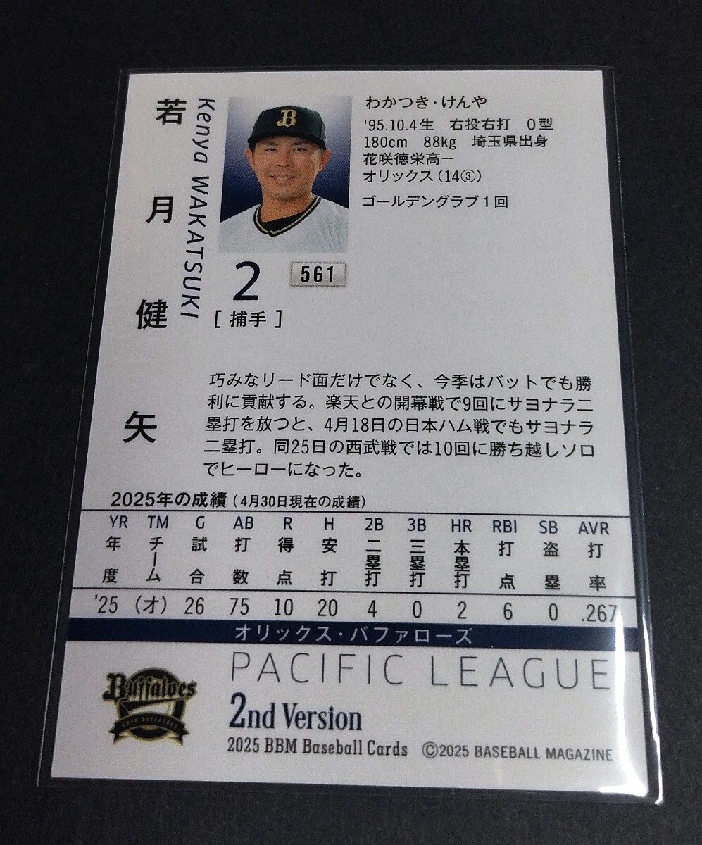 2025年BBM 2nd 若月健矢(オリックス) 銀箔サイン入り。No,561。