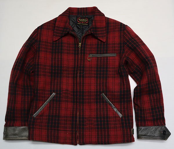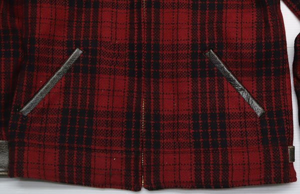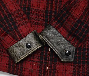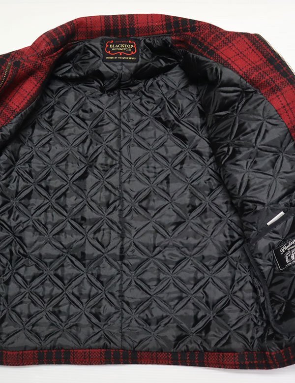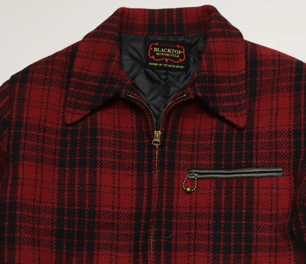 BLACKTOP MOTORCYCLEのレザー(黒系)xウール(黒系x赤系チェック)の日本製の中綿入りでTALON製ZIPです。