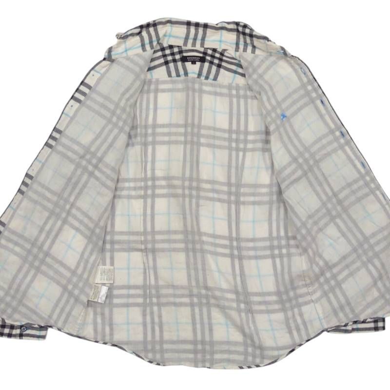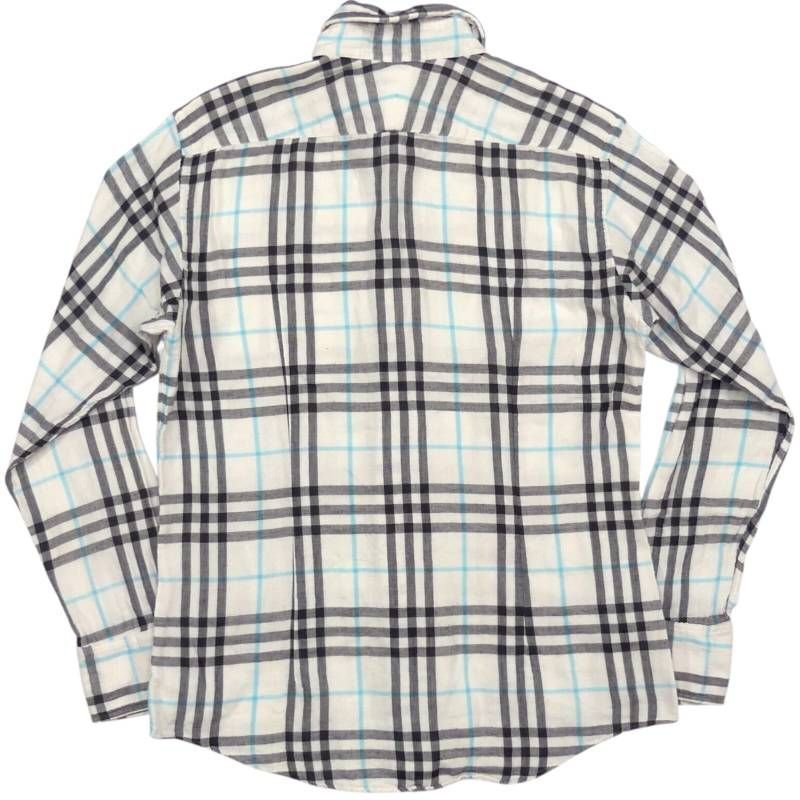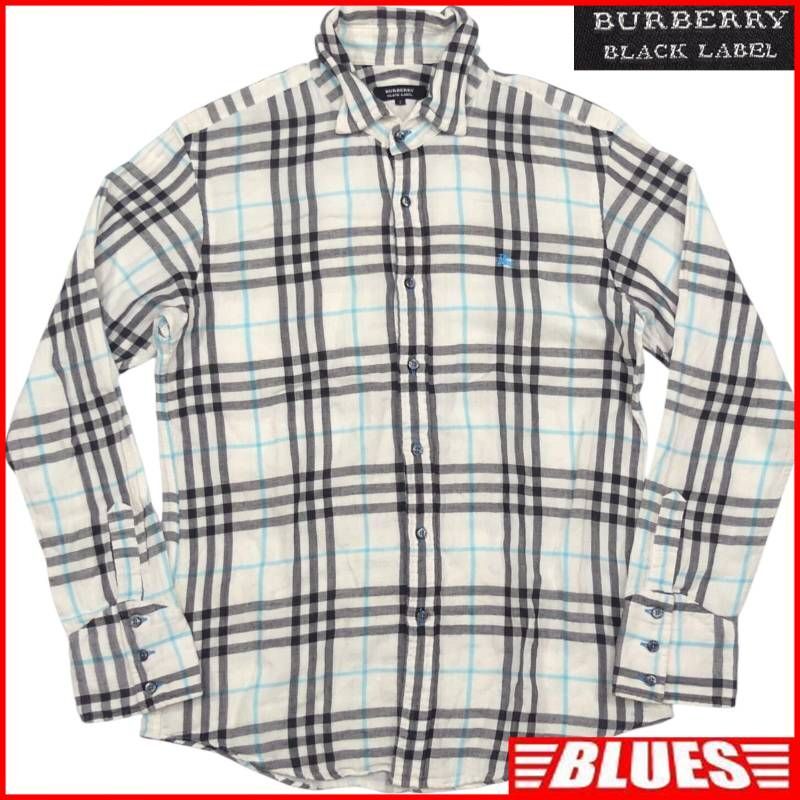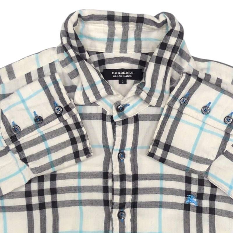 即決★BURBERRY BLACK LABEL★廃版 シャツ M バーバリーブラックレーベル 2 白 チェック 三陽商会 刺繍 長袖 日本製