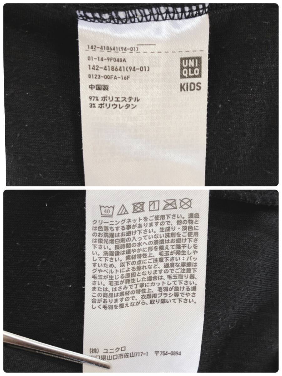 YX1535 美品 UNIQLO キッズトップス タートルネック 長袖 厚手 伸縮性 ブラック 黒 シンプル シック おしゃれ あたたか 秋冬