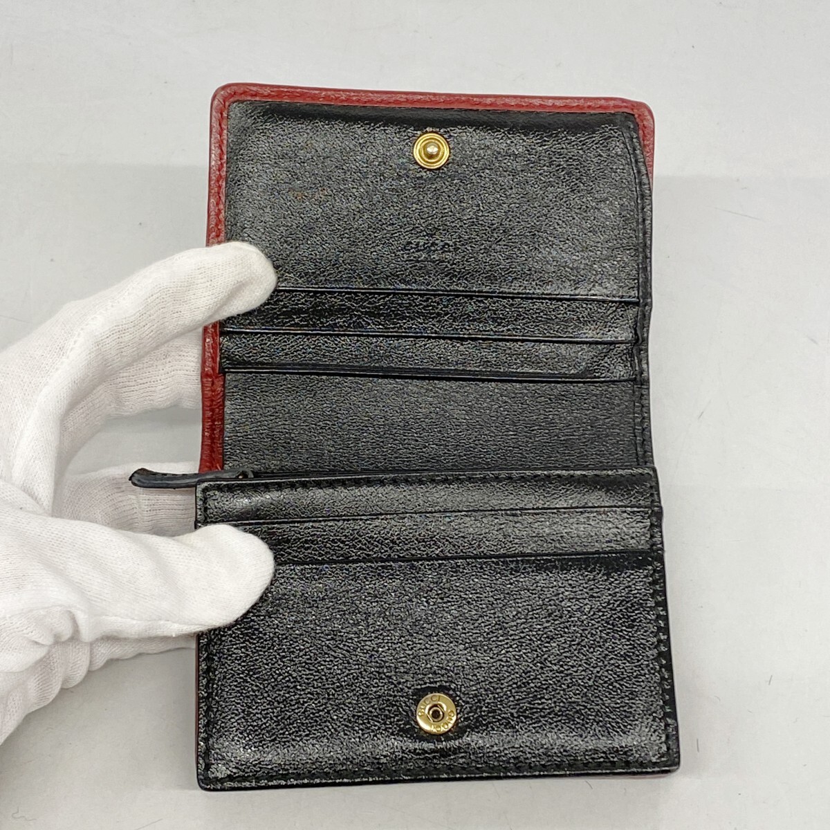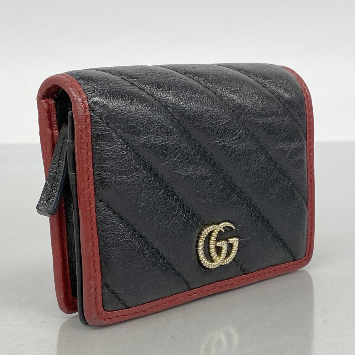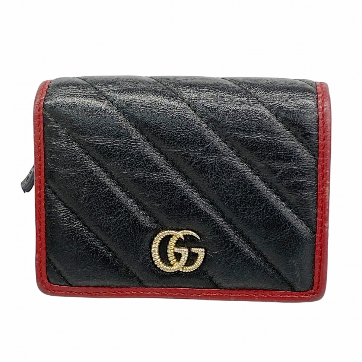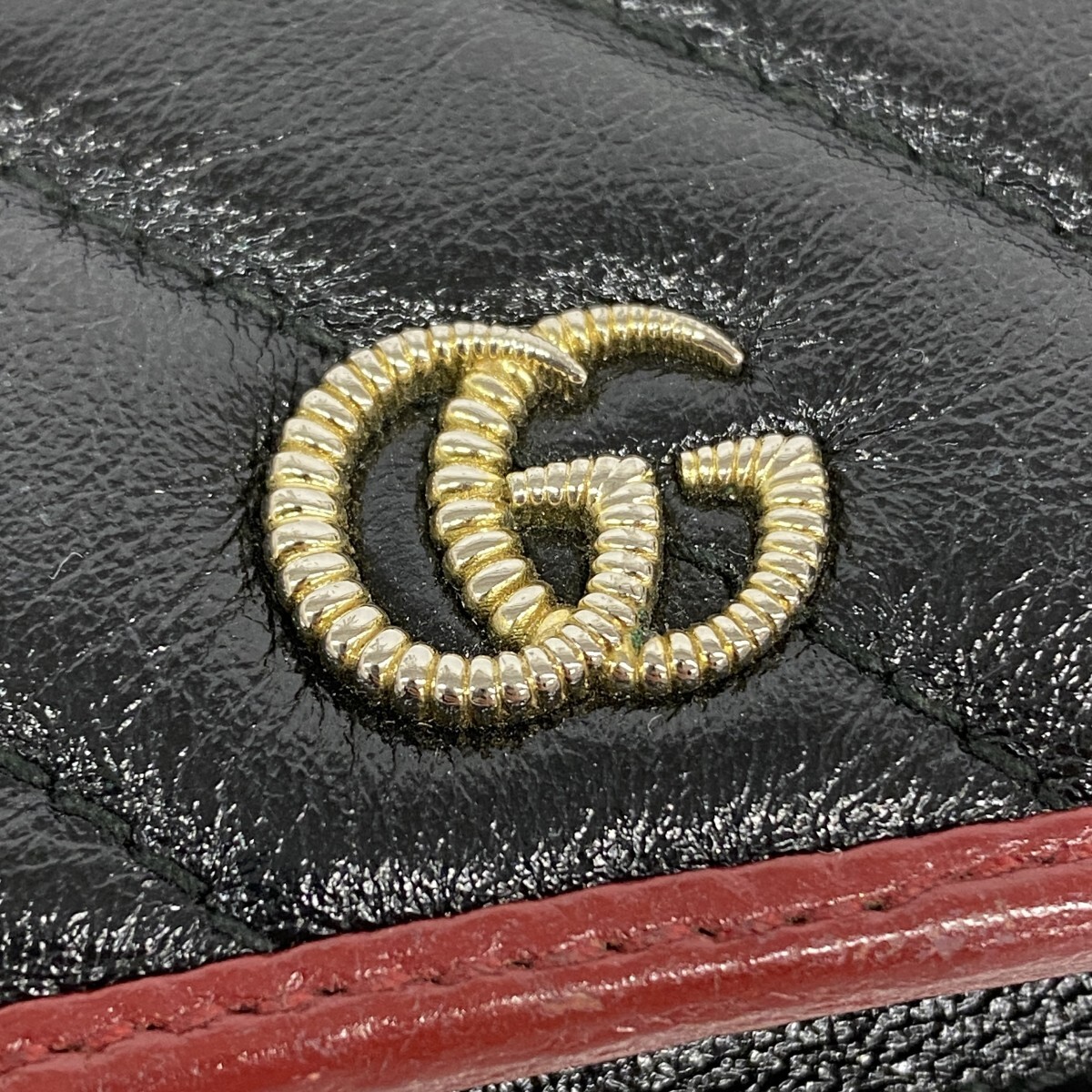 【5ia0850-h】グッチ 財布 GGマーモント 573811 レザー ブラック レッド シャンパンゴールド金具【中古】レディース
