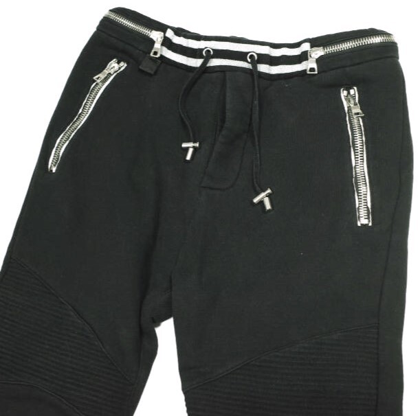 BALMAIN バルマン 18AW zip-detail biker track pants ジップバイカートラックパンツ W8H5584J093 S Black 蛇腹 裏起毛 スウェット スリム