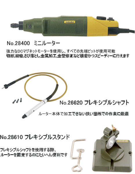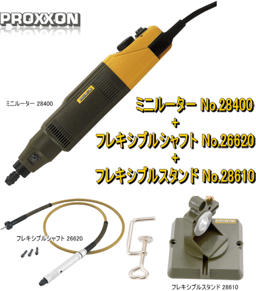 商品 | プロクソン PROXXON ミニルーター No.28400 (フレキシブルシャフトNo.26620、フレキシブルスタンドNo.28610付) |