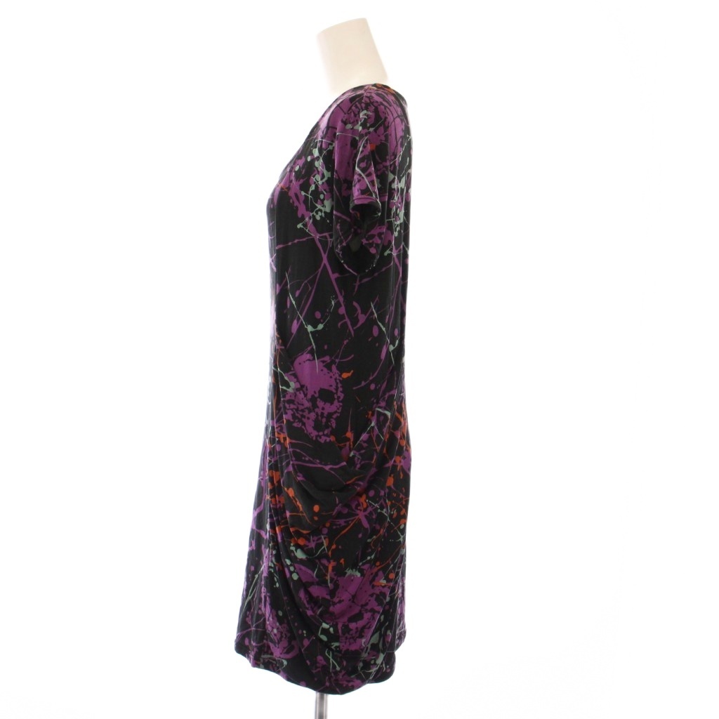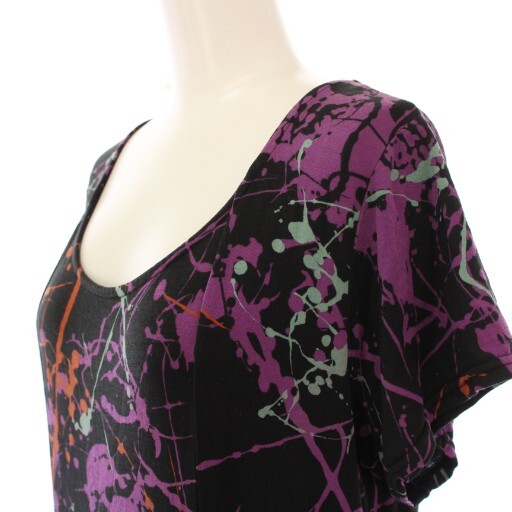 ヒステリックグラマー HYSTERIC GLAMOUR ワンピース ひざ丈 半袖 Uネック ストレッチ スカル柄 ドクロ柄 ペイント F 黒 マルチカラー