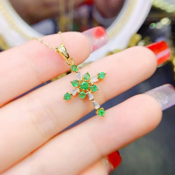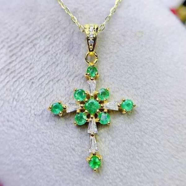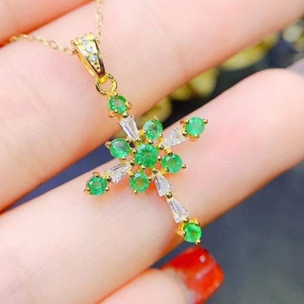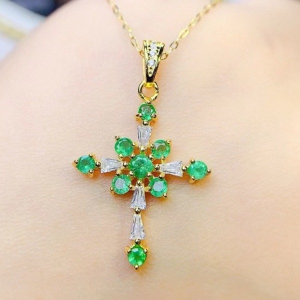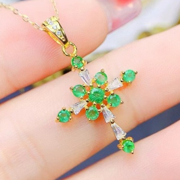 天然エメラルドペンダント 3mm シルバー925チャーム付き 日常着用クロスデザインのペンダント