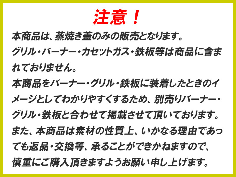 グリル・コンロ本体及び鉄板等は商品に含まれません。(蒸し焼き蓋のみの販売となります)