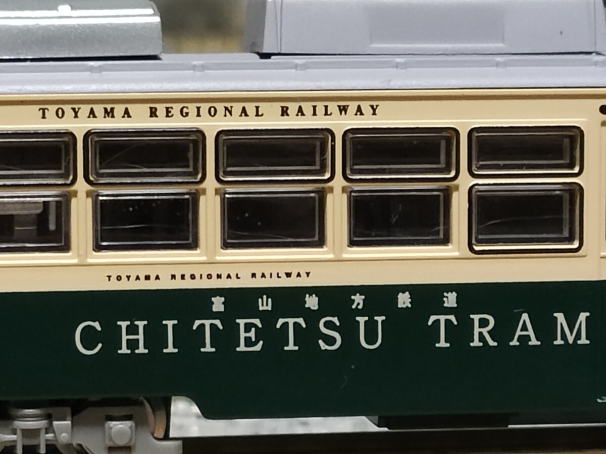 グリーンとベージュのシックな色合いに富山地方鉄道、CHITETSU TRAMのレタリングがくっきり美しい仕上がりです。