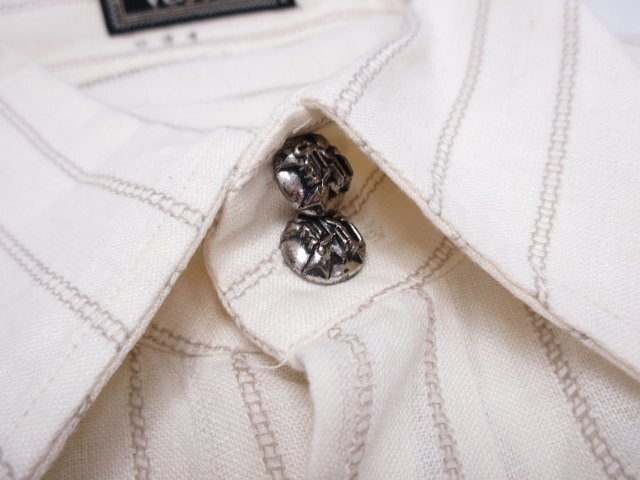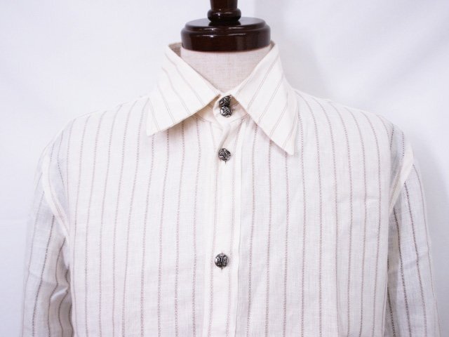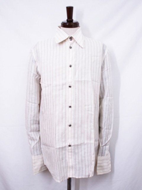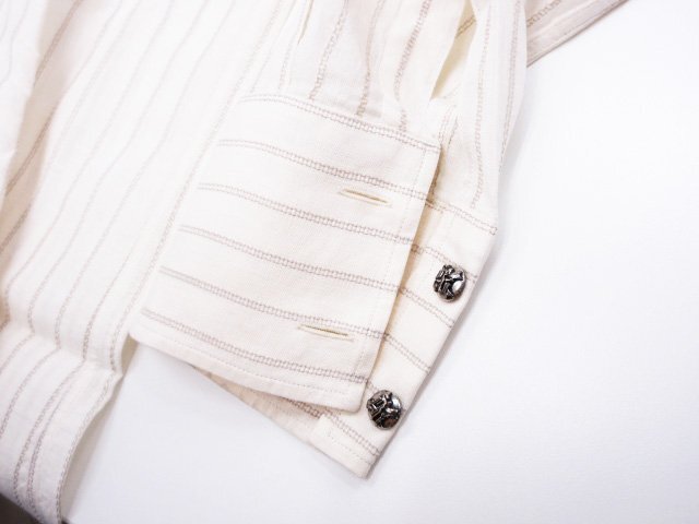 美品【ジャンニヴェルサーチクチュール】 ドゥエボットーニ メタルボタンシャツ (メンズ) size52 アイボリー ストライプ柄 伊製 ◇33MK6017
