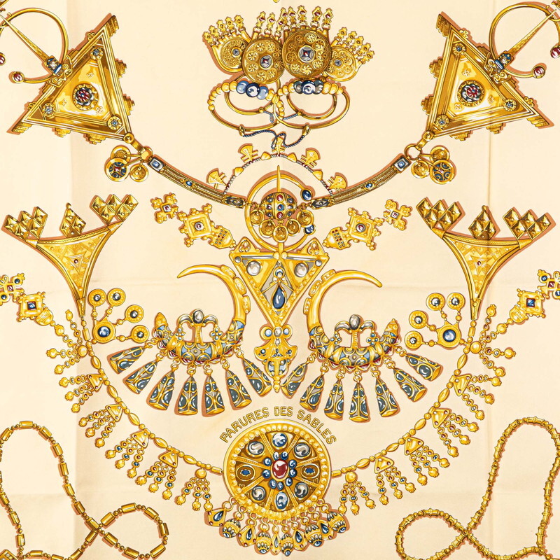 エルメス カレ90 FARURES DES SABLES 砂漠のアクセサリー スカーフ ブラウン マルチカラー シルク レディース HERMES 【中古】