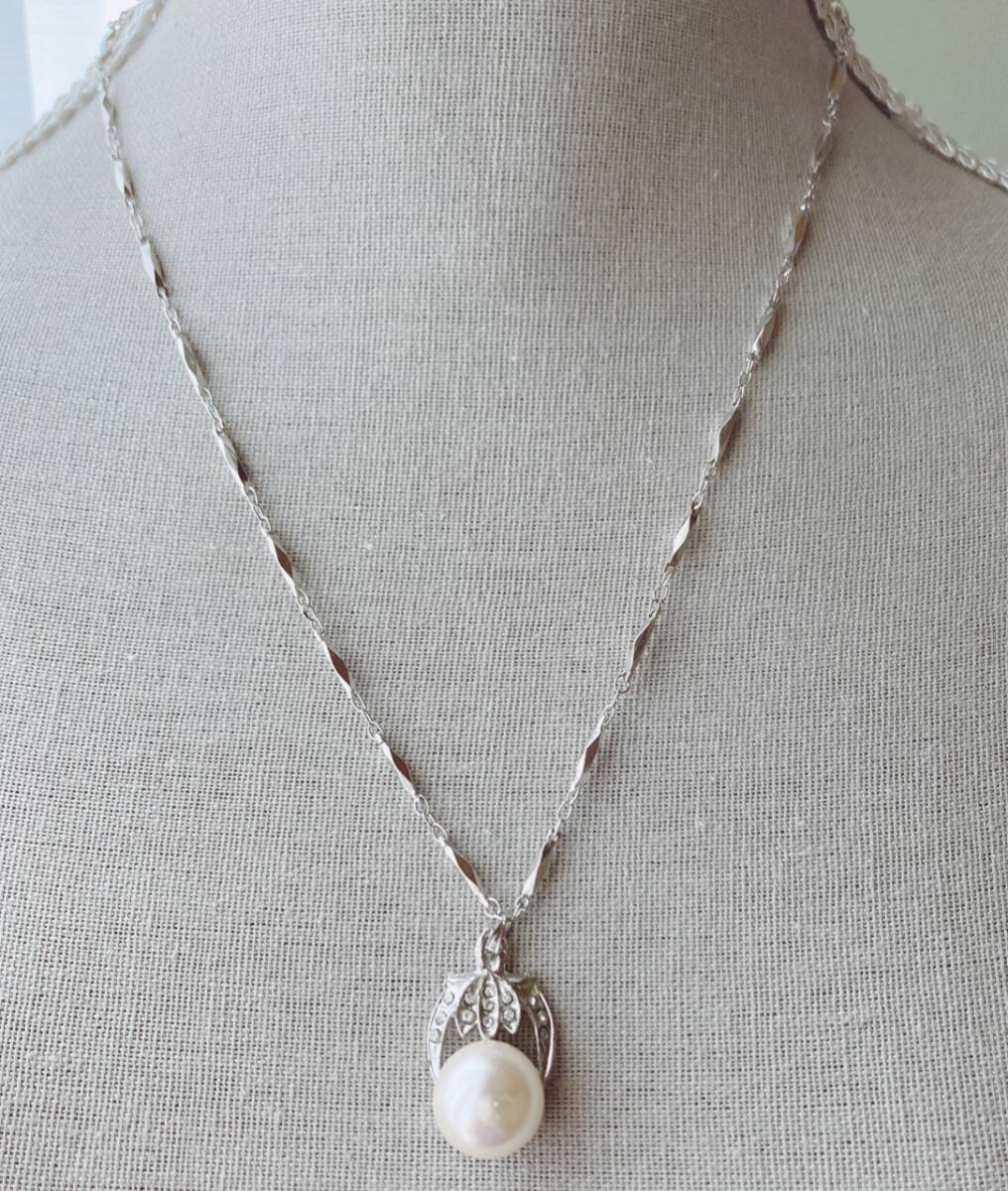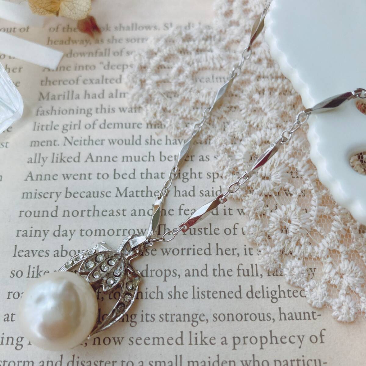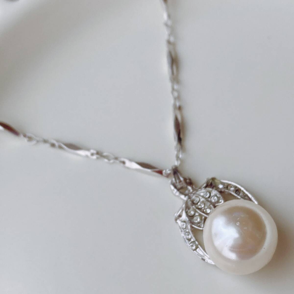 ネックレス ショート パール 大玉 一粒 シルバー ガラス 高見え 美品☆vintage jewelry accessories F0029