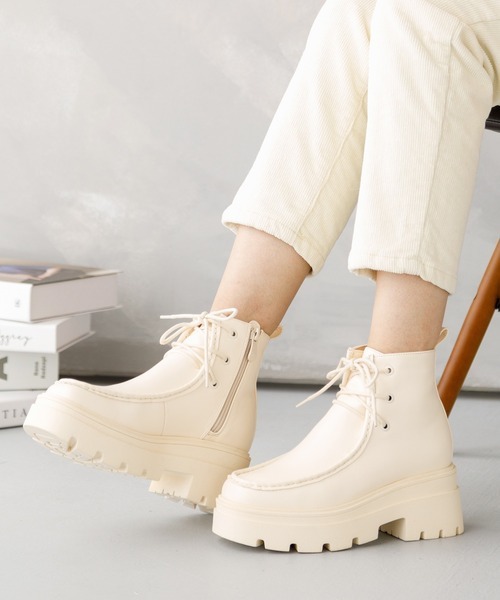 参考商品名:厚底レースアップモカシンブーツ