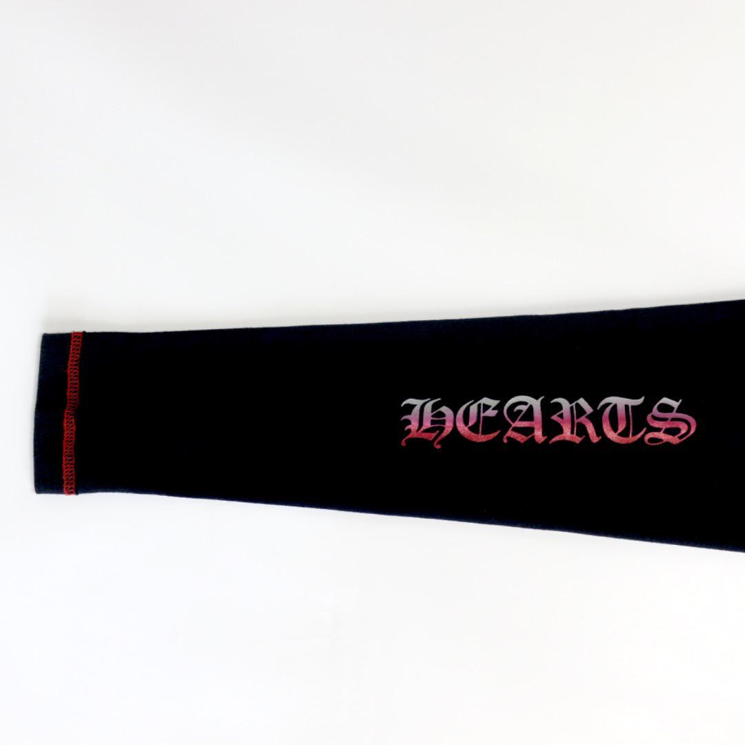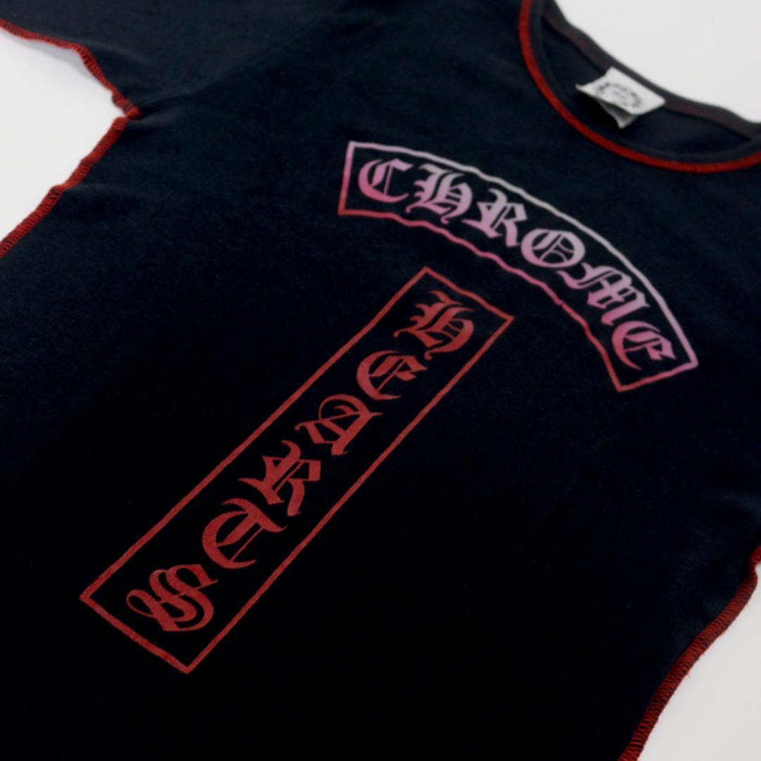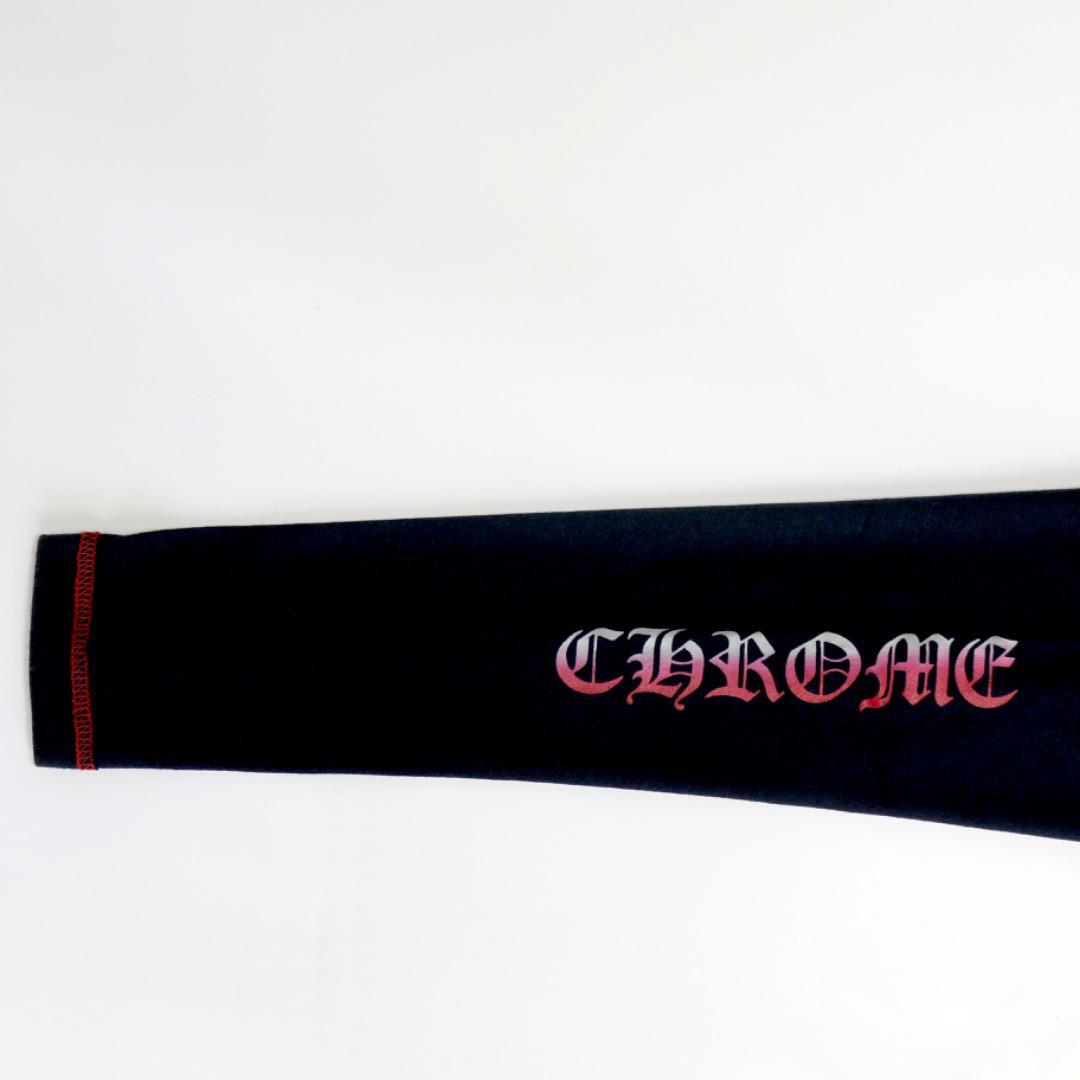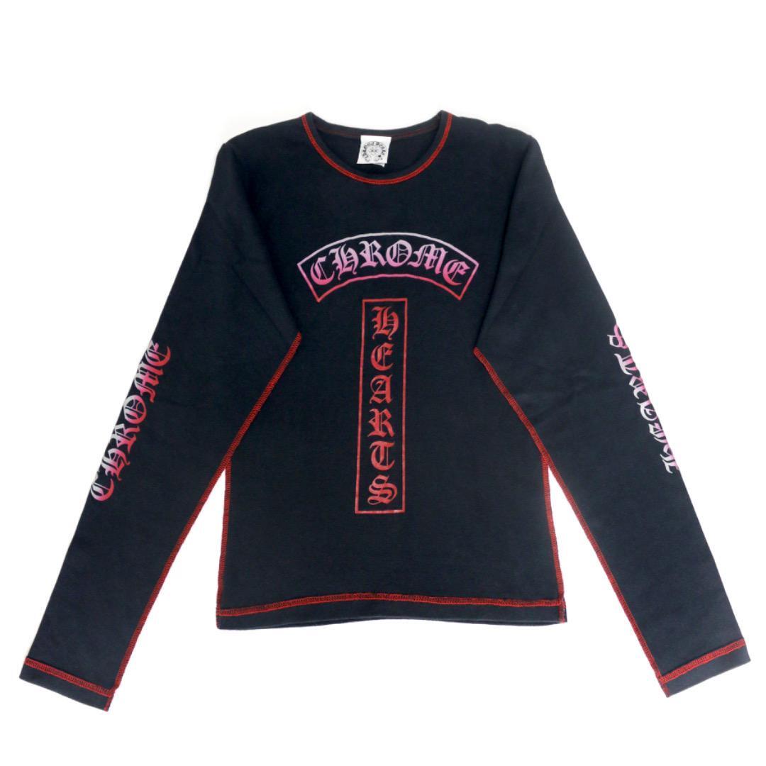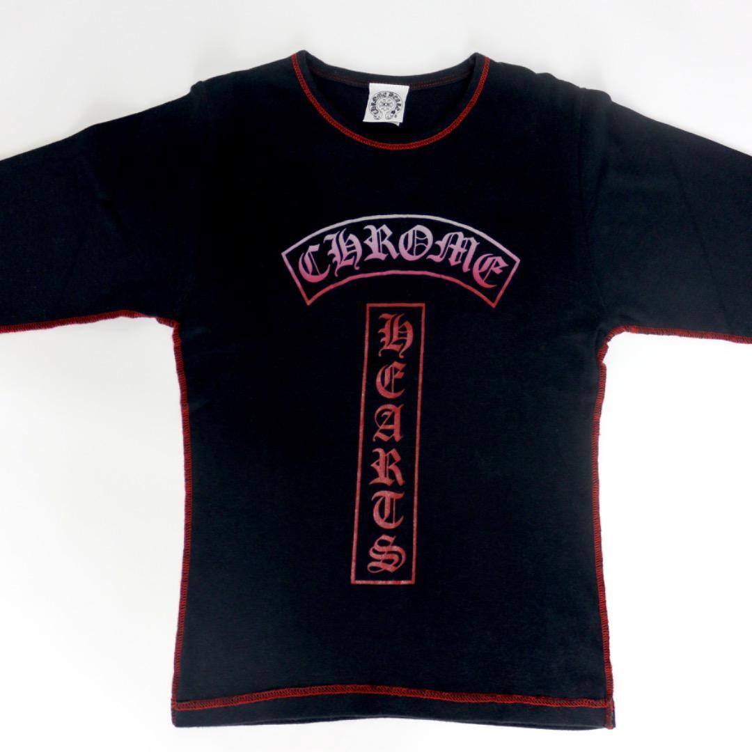 ご覧い頂きまして有難うございます。 Chrome Heartsの歴史は・・ 1988年にリチャード・スターク(Richard Stark)達がシルバーアクセサリー・ジュエリーのブランドとして設立したのが、クロムハーツ(Chrome Hearts)です。 革製品のセールスを生業としていた頃、彼はハーレーダビッドソンで全米中をセールしてまわっていました。 その時に同業者のジョン・バウマン(John baumann)と知り合って意気投合し、共同で事業を始めるようになります。 2人はそのビジネスの傍らで、既存のメーカーのバイク用ファッションにどうしても満足できず、自分たちが身に着けたいと思う物を自分たちで作りたいと思うようになり、やがて、彫金職人であったレナード・カムホート(Leonard Kamhout)を巻き込んで、本格的にバイク用ファッションのビジネスをスタートさせました。 これがいわゆるクロムハーツを創業したとされる3人の出会いです。 もとはレザークラフトから始まった弱小ブランドですが、今現在のクロムハーツの核になるアイテムはシルバーアクセサリーであり、そのルーツとなるのが天才彫金師レナード・カムホートが存在です。 レナード・カムホートの存在が無ければ現在のクロムハーツの成功と繁栄は有り得ません。 クロムハーツのコンセプトは「唯一無二の存在」 最高峰の彫金技術が創りあげる骨太なラグジュアリー 他の追従を許さない独自のを展開するクロムハーツが手がけるレザーアイテムは、無骨でありながらもシックでゴージャス。 アイテムは2007年にクロムハーツ東京で購入した 限定Tシャツに成ります。 珍しいクロムハーツのインサイドアウトのロンTで、袖の左右にはクロムハーツのグラデーションロゴ『CHROME』『HEARTS』プリント、全面には全盛期の中期に採用されてたデザインの長方横形枠の中にはCHROME 長方縦形枠にはHEARTSとグラデーションCHロゴが有り インサイドアウトの特徴でも有る縁取りのパイピングステッチは赤色で構成された希少なヴィンテージ Tシャツです。 シーズンを問わず着用できるモデルで、クロムハーツのアパレルアイテムの中でもインサイドアウトの着心地を重視した商品にさらに限定感をだしたレアな廃盤品です。 アイテムはクロムハーツの荒々しい歴史に名を残す中期モデルの希少なアイテムです。 特選された代表モチーフは、時代に流される事なくクロムハーツの創業理念と共に完成されました。 キング・オブ・シルバーの名に相応しい風格とバイカーファッションをルーツとするワイルドさを兼ね備えた他にはない魅力的なアイテムは、最盛期のクロムハーツを代表する柄で、多くのファンを惹きつけてやみません。 | |||