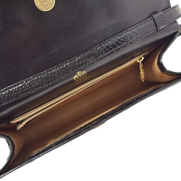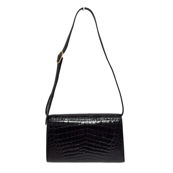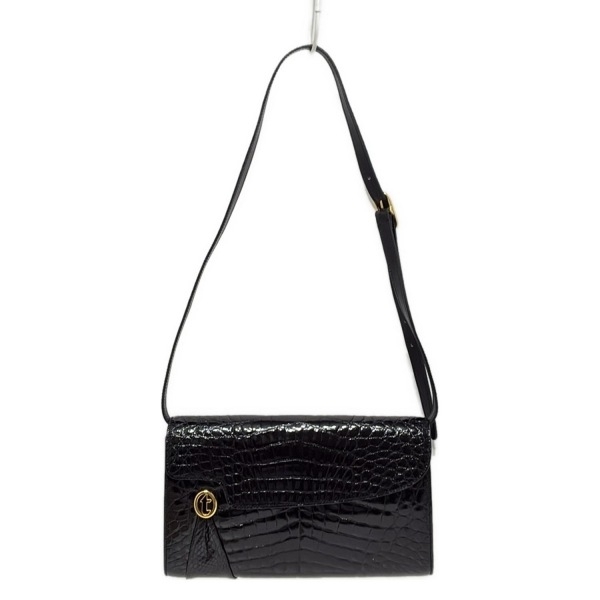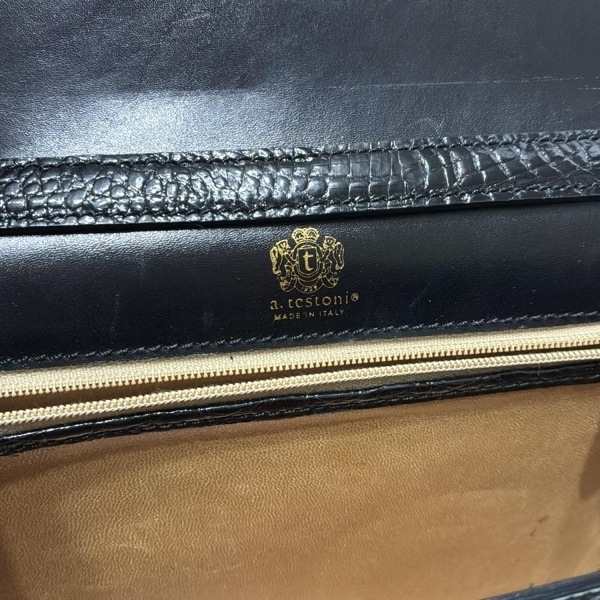ア・テストーニ a.testoni ショルダーバッグ - レザー 黒 型押し加工/2way/ストラップ着脱可 バッグ
