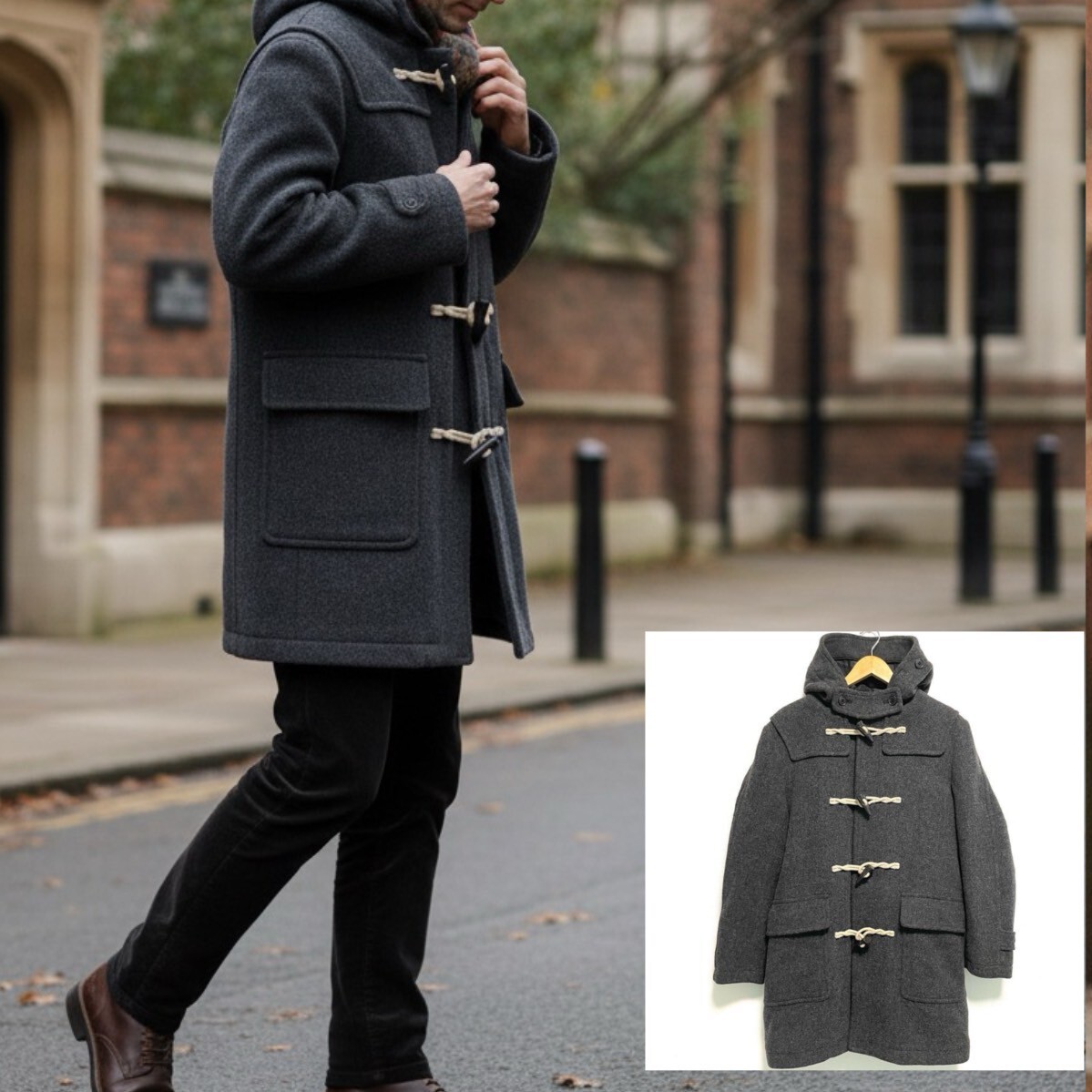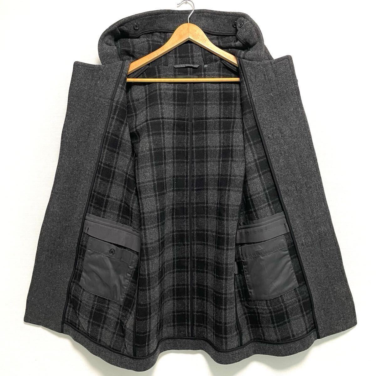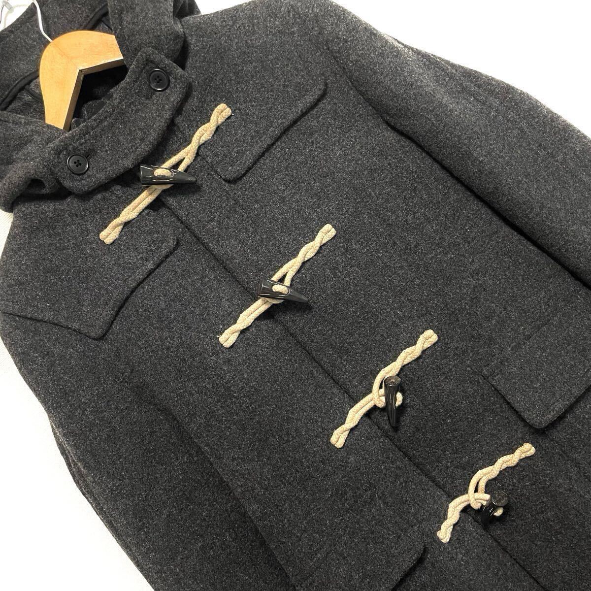 クラシカルなトグルボタンと、しっかりと厚みのあるウール素材が特徴◎防寒性に優れたフード一体型デザインで、冬の外出時にも心強い一着です!!内側はグレンチェック柄の裏地で、さりげないおしゃれ感を演出◎ビジネスにもカジュアルにもマッチしやすいチャコールグレーで、幅広いコーディネートに活躍いたします!!裏にうっすら記名がありますがまだまだ問題なく着用いただけます。その他、目立った傷やよごれはなく美品です!!