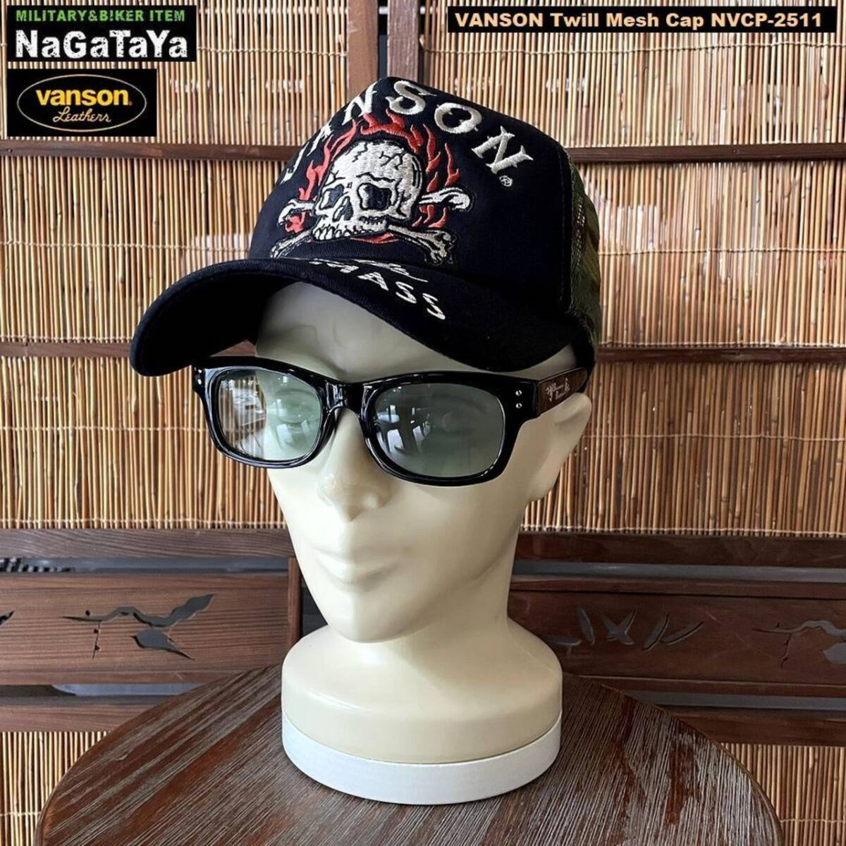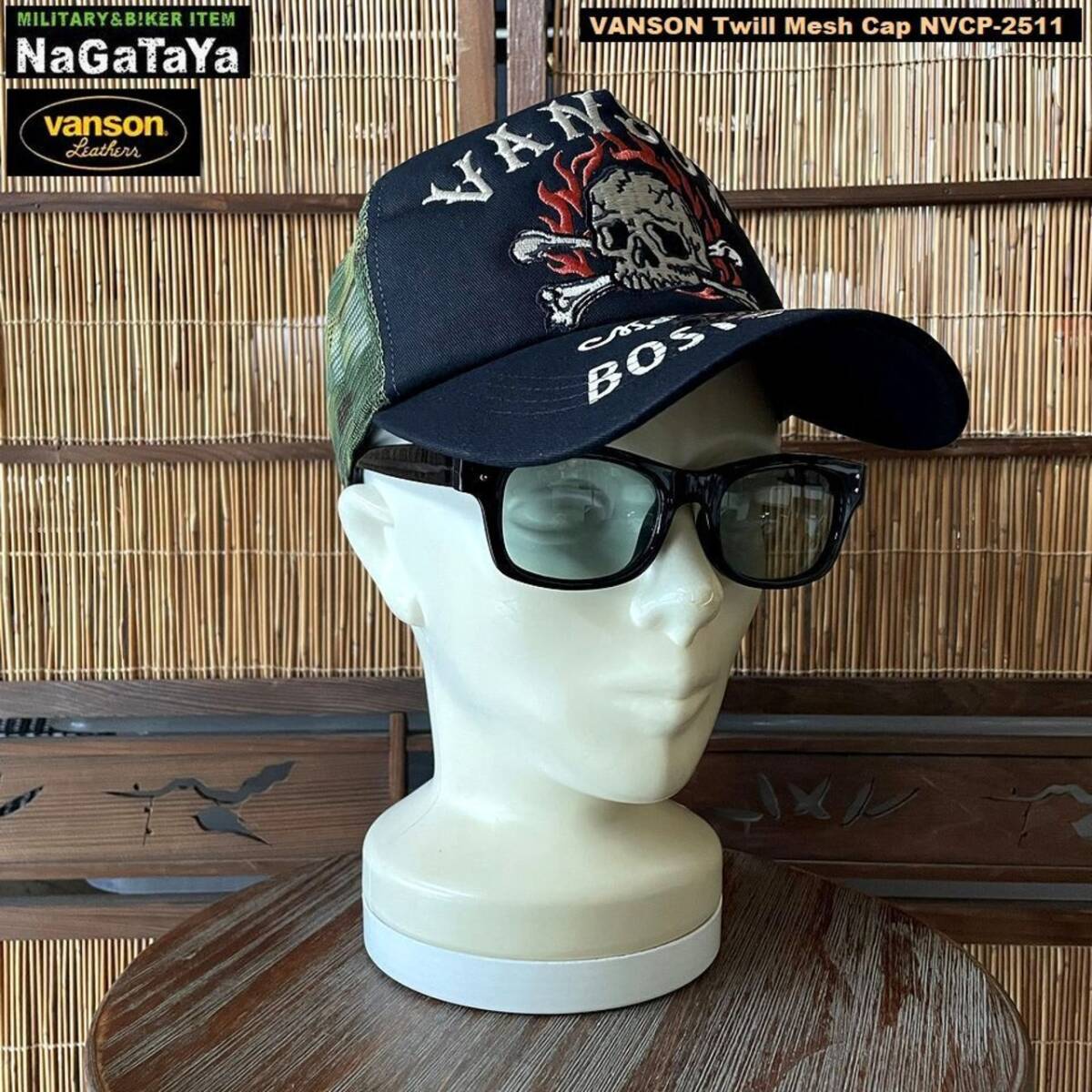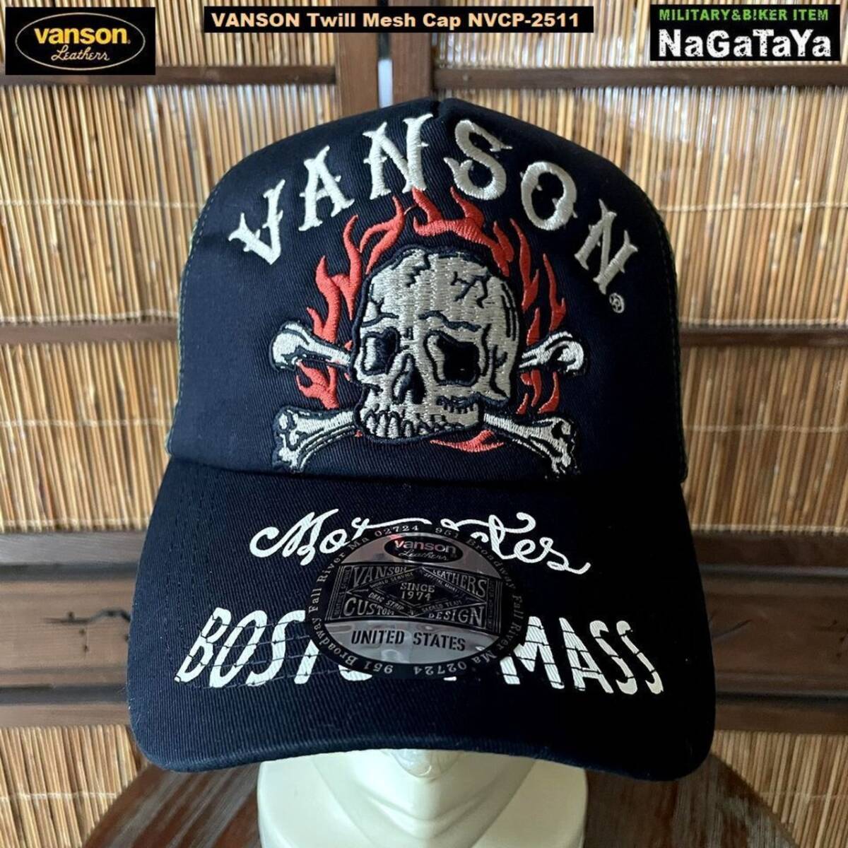 ★ VANSON バンソン スカルファイヤーロゴ刺繍 メッシュキャップ ツイル生地 帽子 メンズ NVCP-2511 ★