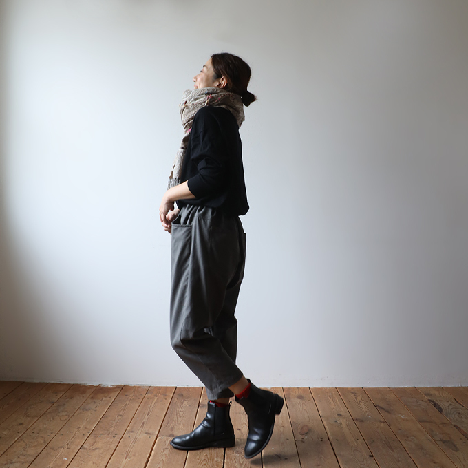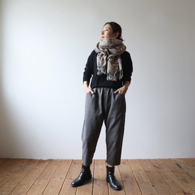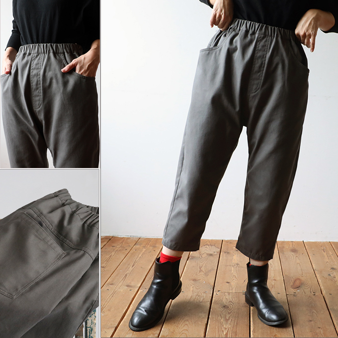 ウエストゴムの「股上深いマニッシュ テーパード ペグパンツ」を作りました。