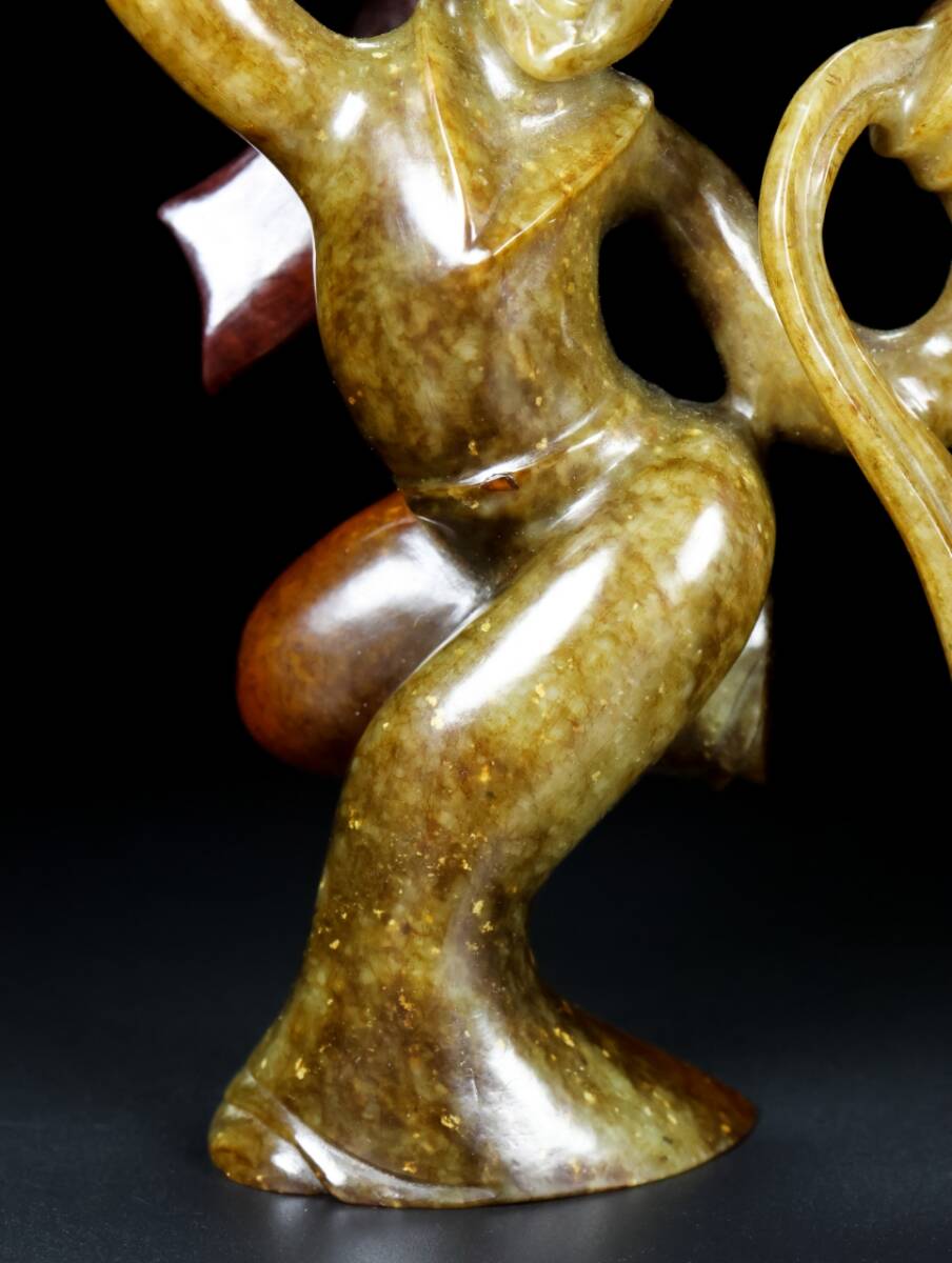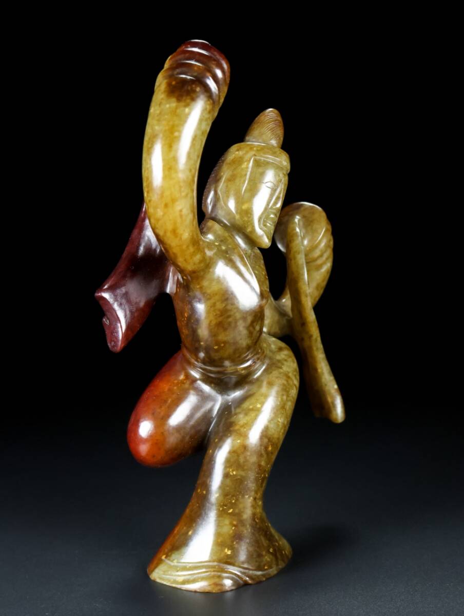漢時代 古和田玉 高古玉彫 玉彫 舞人 老玉 擺件 文案置物擺件 極細工 時代物 唐物 旧家藏出 古賞物 中国古玩 古美術品