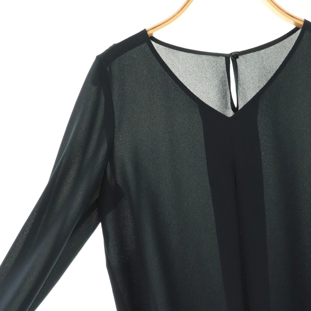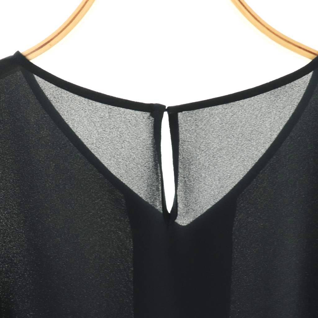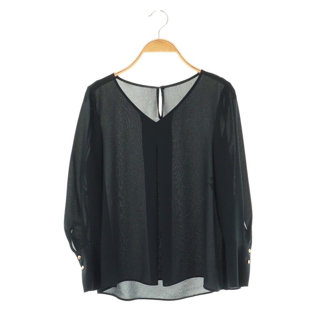 アナイ ANAYI ゴールドカフス付きジョーゼットブラウス 36 ネイビー /DO ■OS レディース