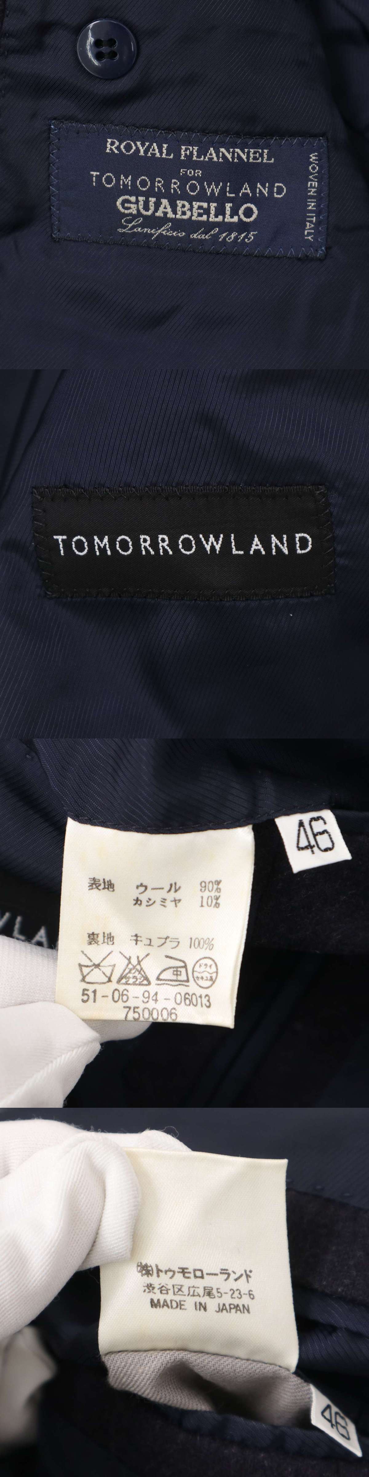 美品★ TOMORROWLAND トゥモローランド 秋冬 GUABELLO カシミヤ混 ウール テーラード ジャケット ブレザー Sz.46 メンズ 紺