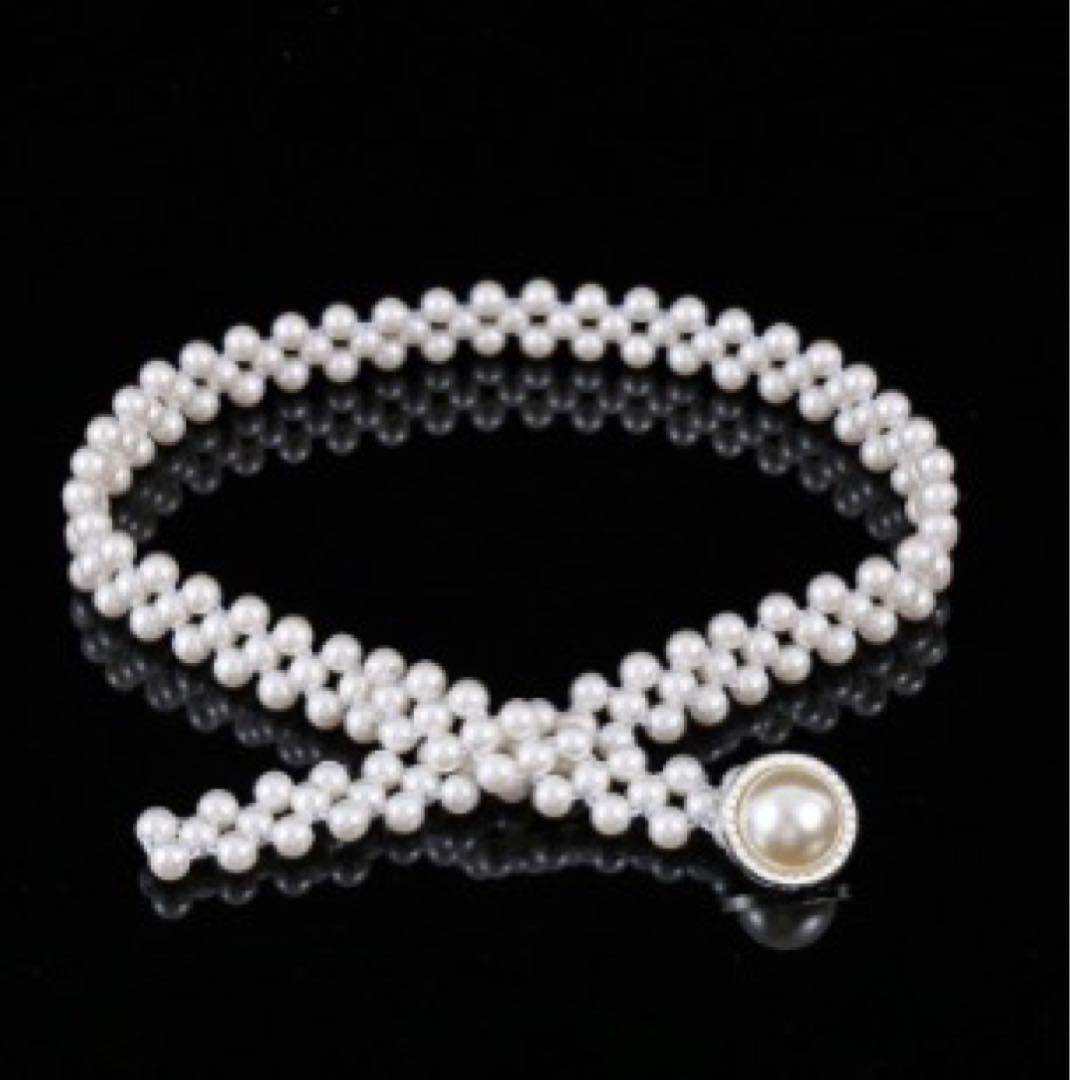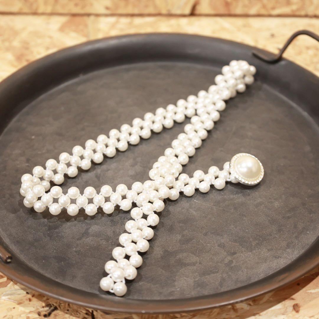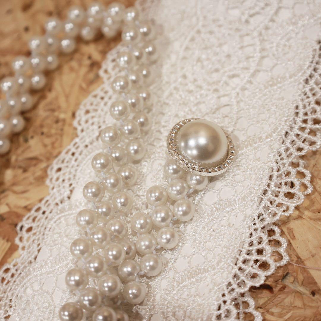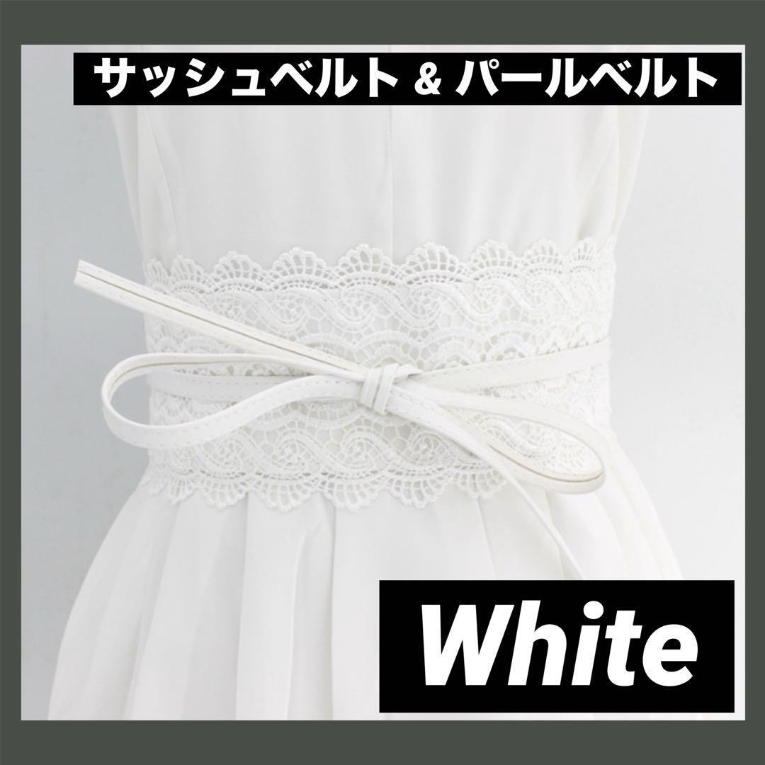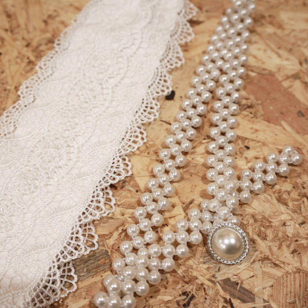 太めレースのサッシュベルト&パールゴムベルトで、
