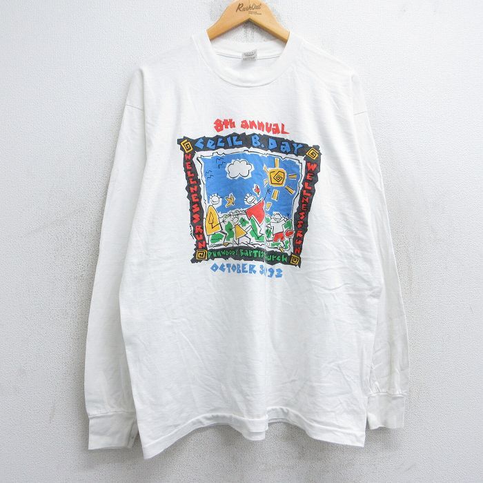 【商品名】 XL★古着 フルーツオブザルーム 長袖 ビンテージ Tシャツ メンズ 90年代 90s マラソン 企業広告 大きいサイズ コットン クルーネック USA製 白【spe】