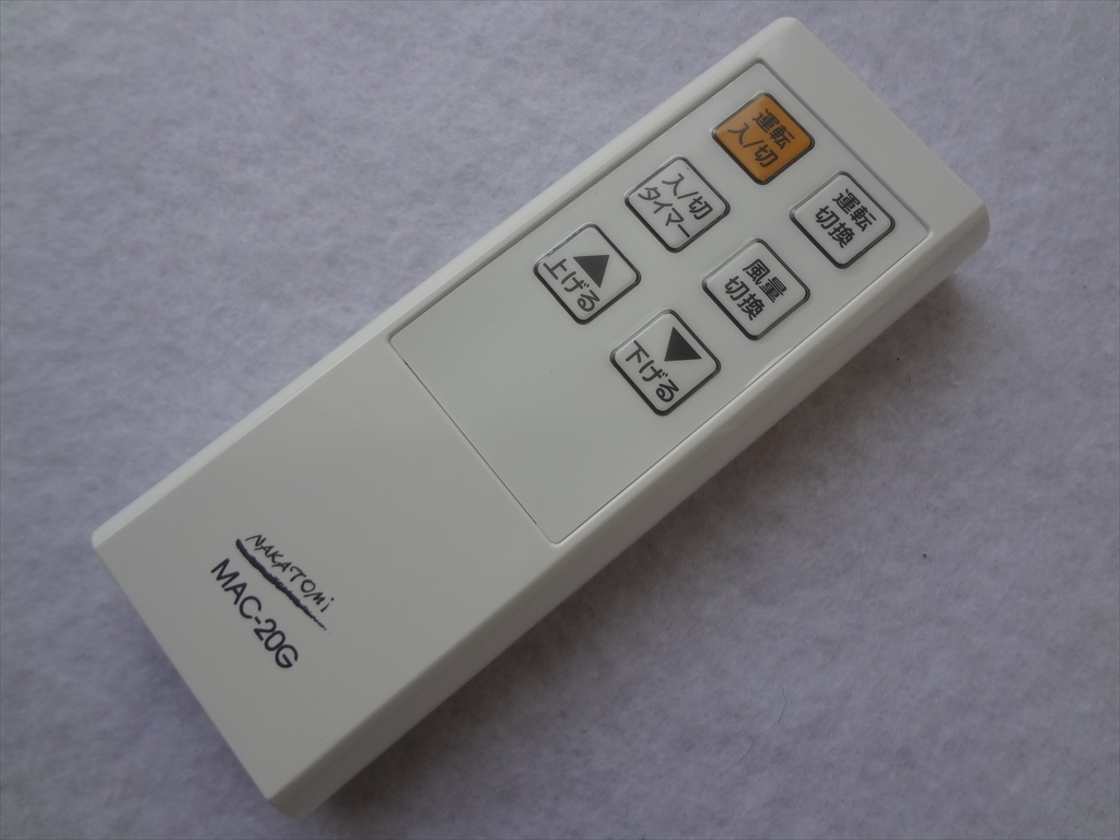 MAC-20Gの文字が入ったバージョンのリモコンです(まれにロゴなしなどに変わる場合あり)。