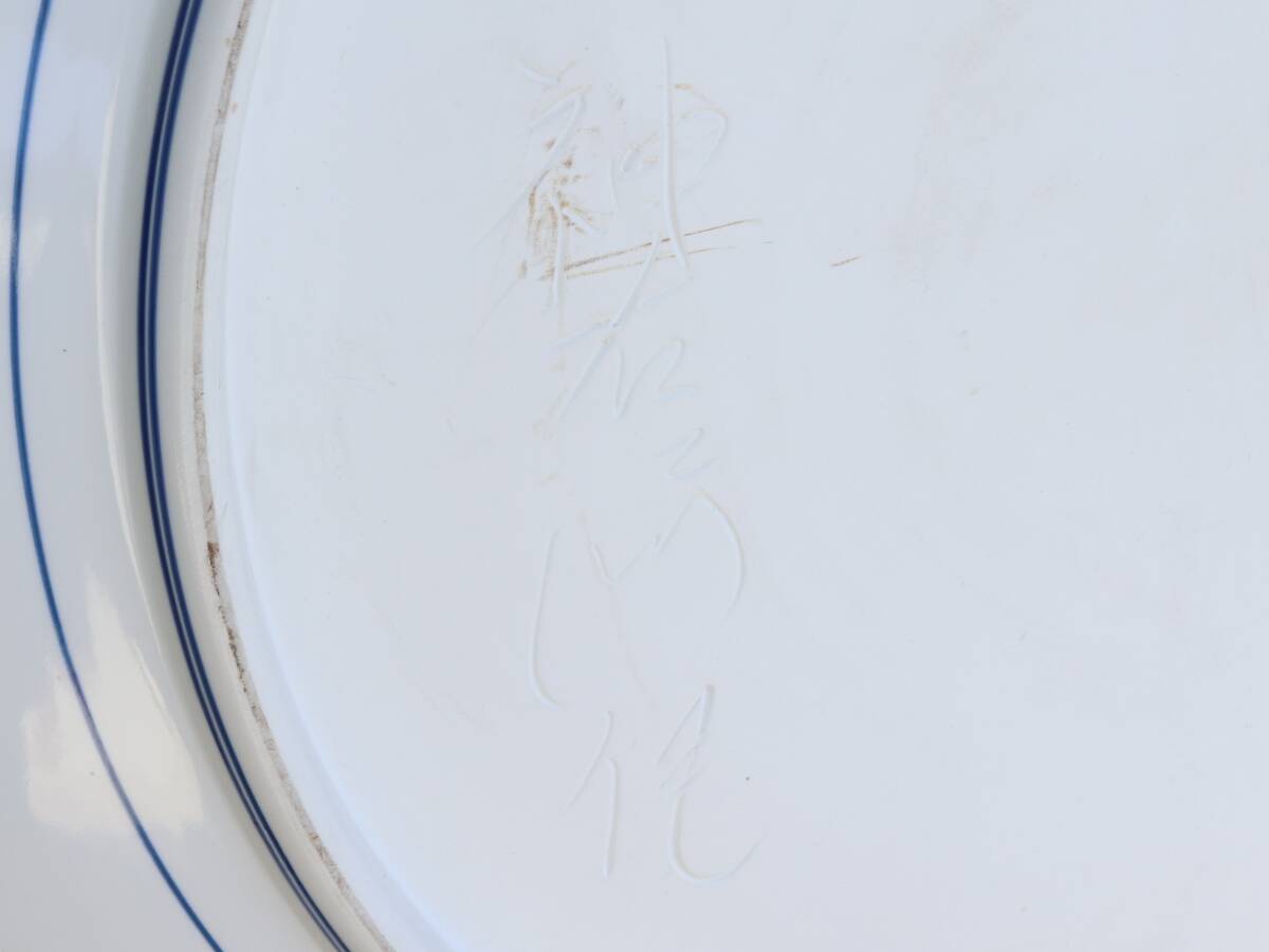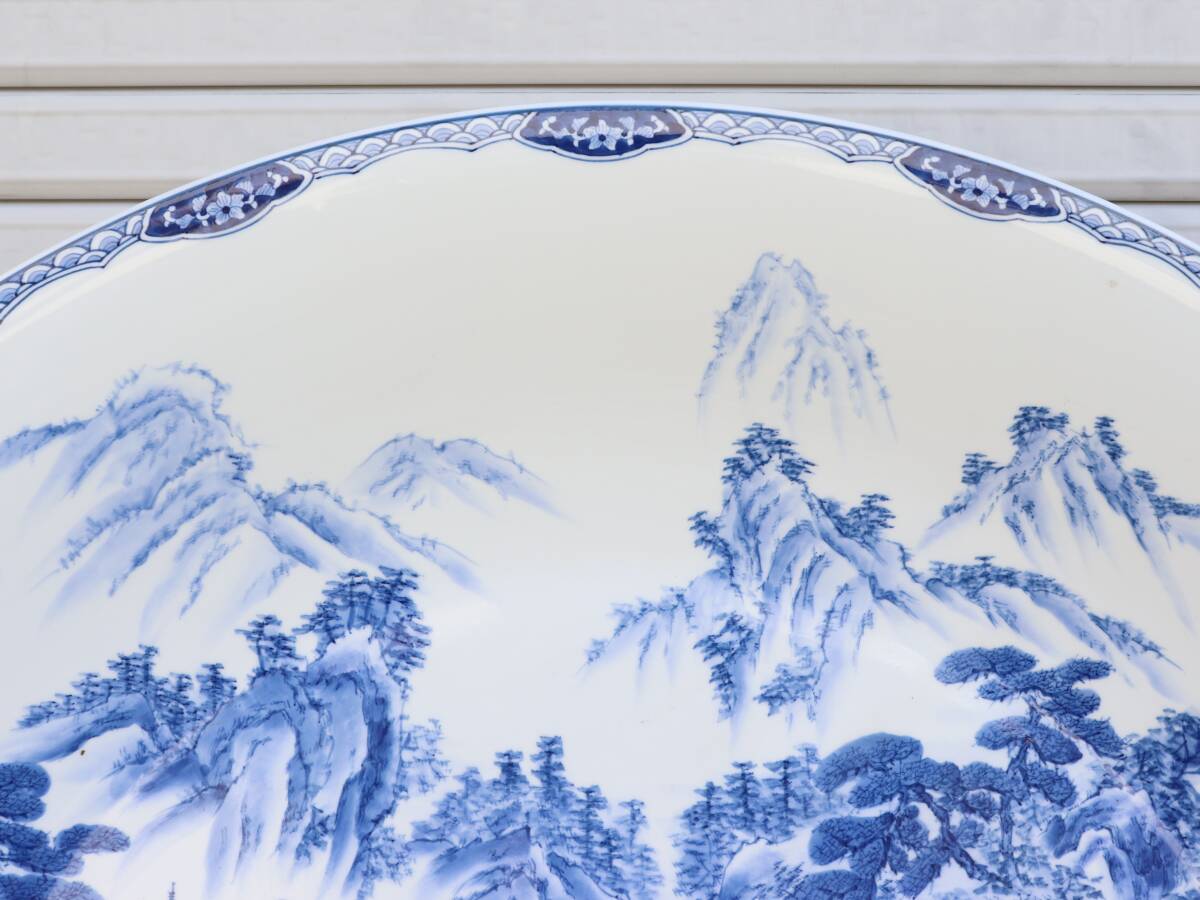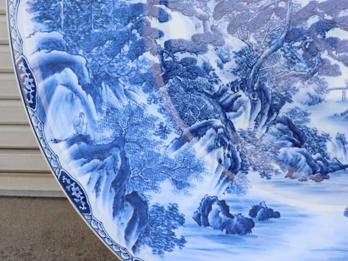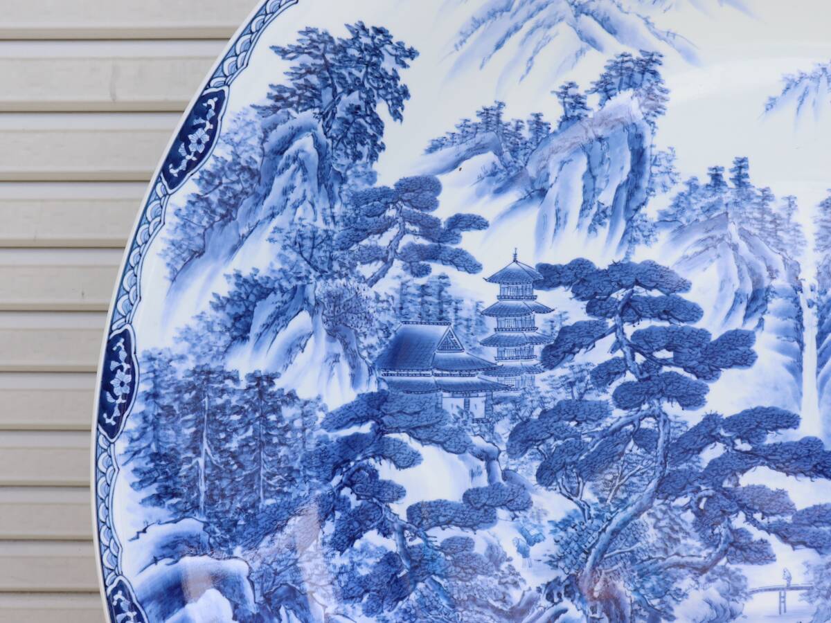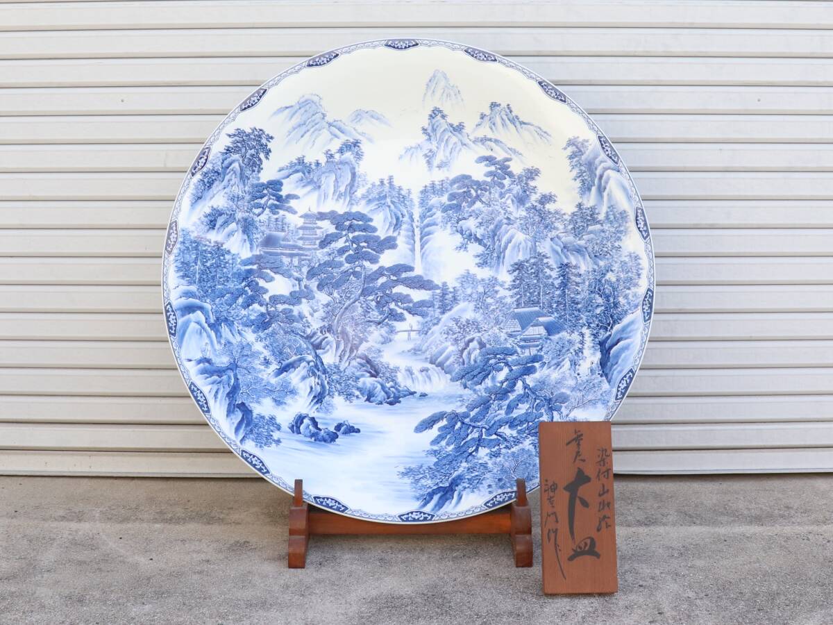 | ■有田焼■特大!!98㌢ 神右衛門 作 染付 山水図 大皿 伝統工芸 立札 皿立付 f2005A | ||||||||||||||||||||