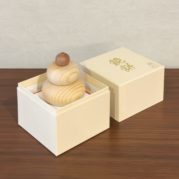 木のあたたかみを活かした、手のひらサイズのヒノキの鏡餅。
