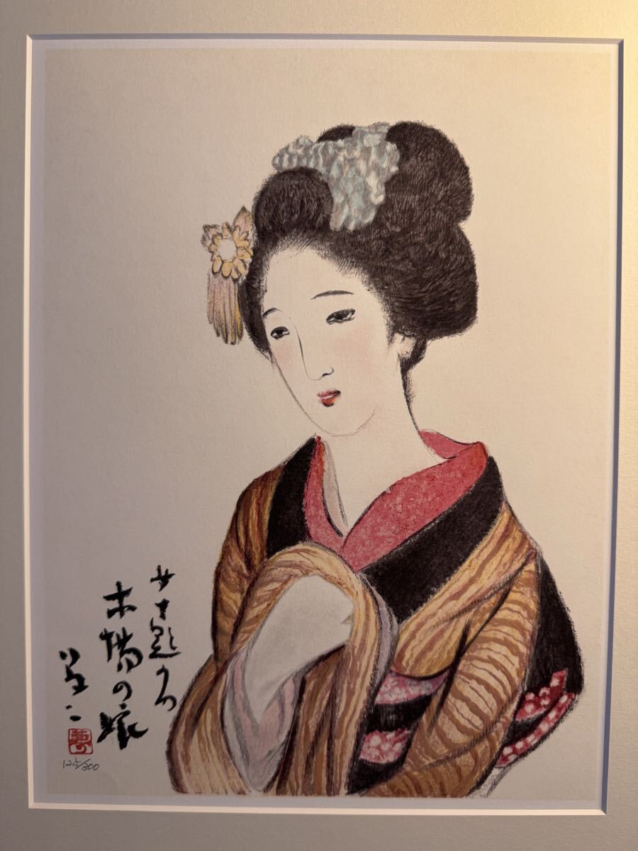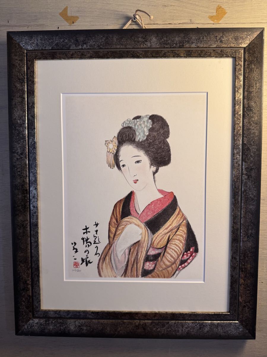 真作 竹久夢二 『 木場の娘 』 リトグラフ 版画 美人画 検索) 木版画 絵画 額装 女十題木場の娘