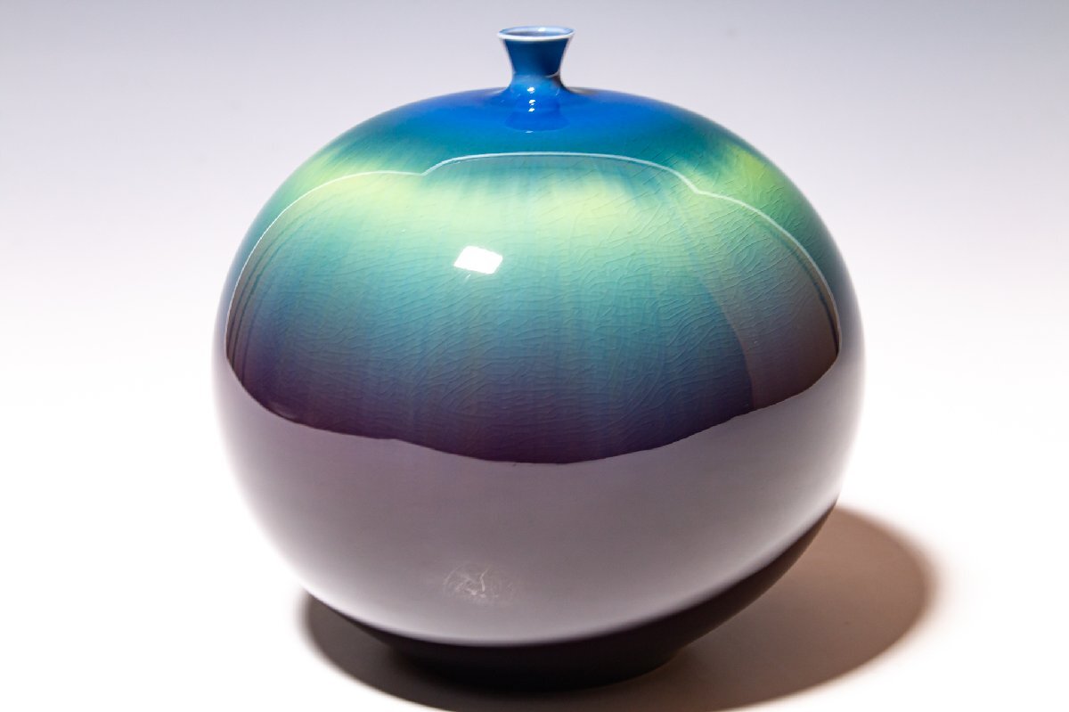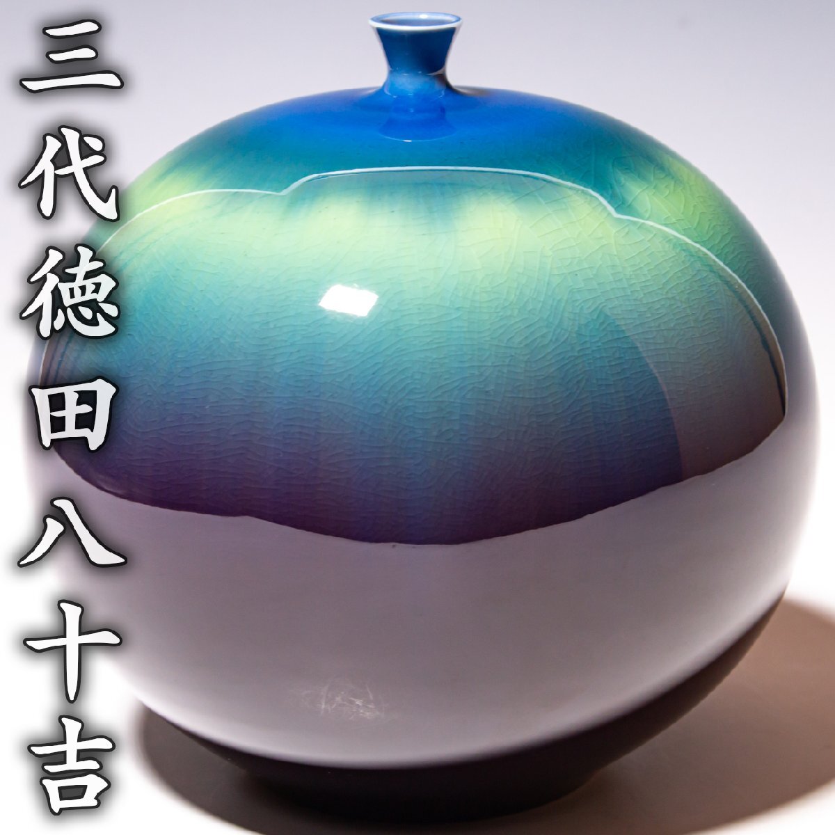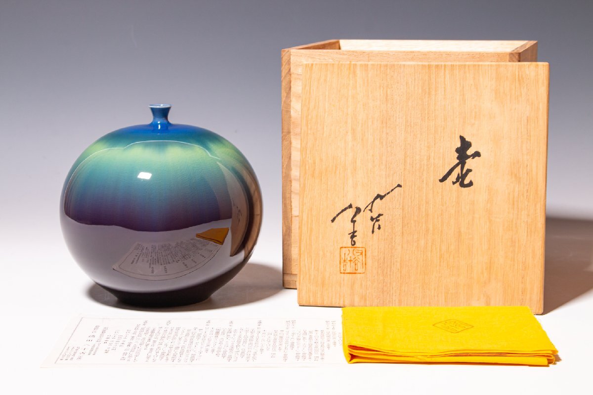 人間国宝【三代徳田八十吉】~最上位作~『耀彩壷』共箱 共布 栞 a528