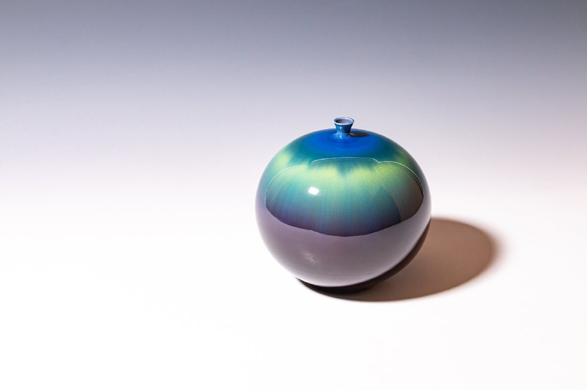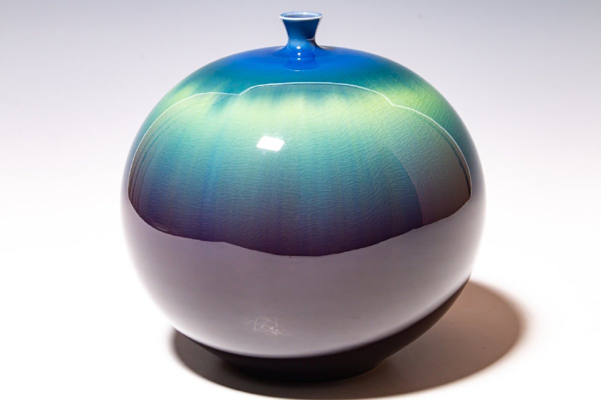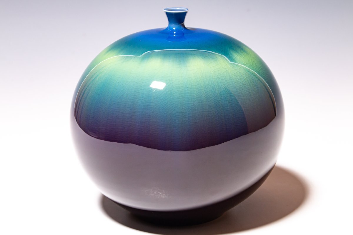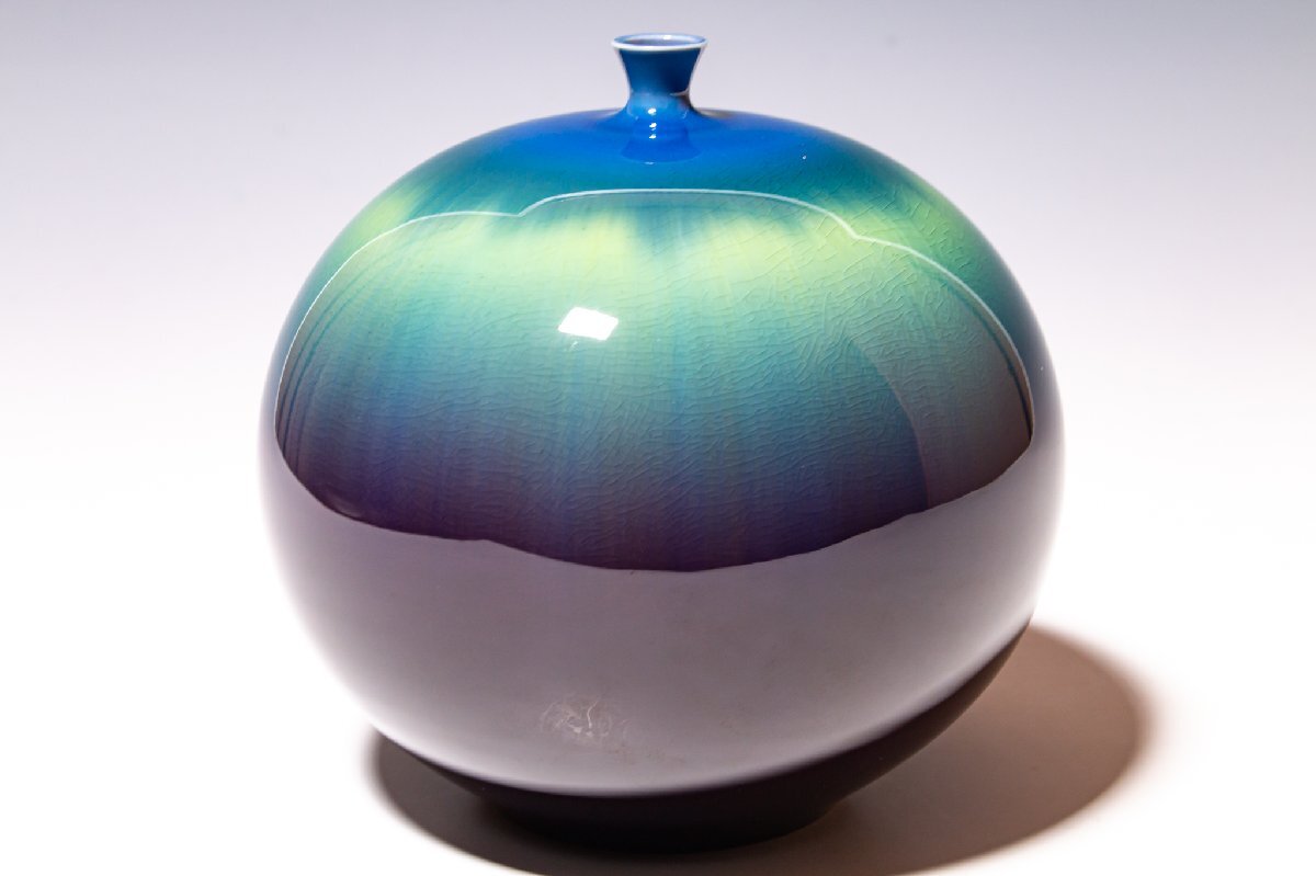 人間国宝【三代徳田八十吉】~最上位作~『耀彩壷』共箱 共布 栞 a528