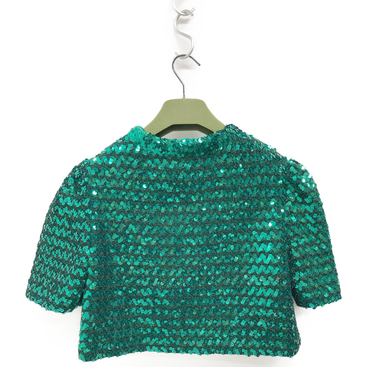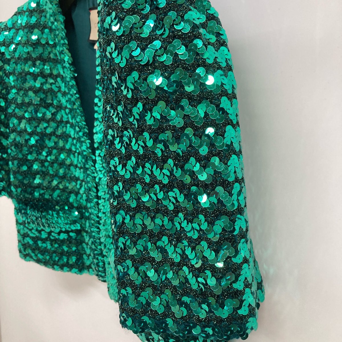 GUCCI グッチ 新品同様 653449 XKBTI ラメ×スパンコール シルクライニング ノーカラーボタンレス ジャケット M グリーン レディース
