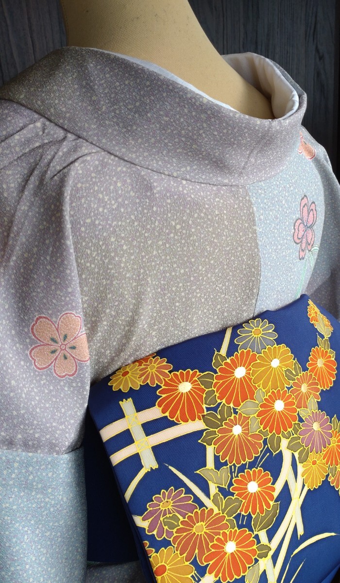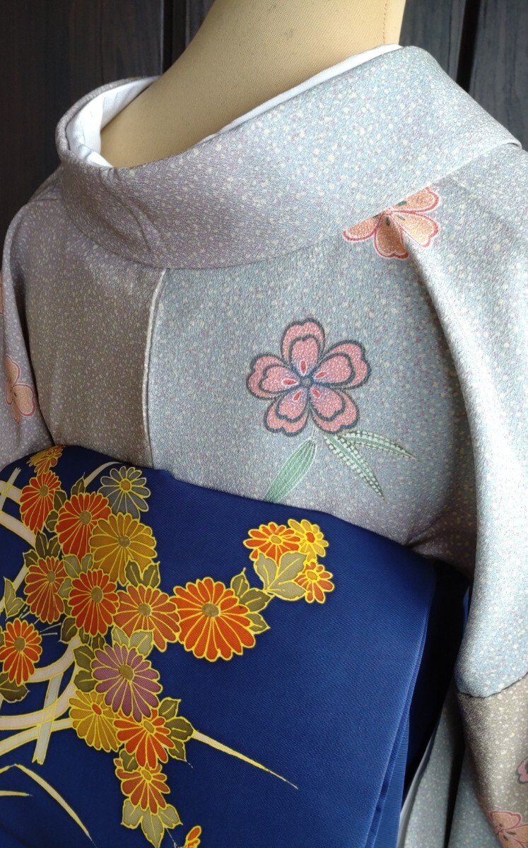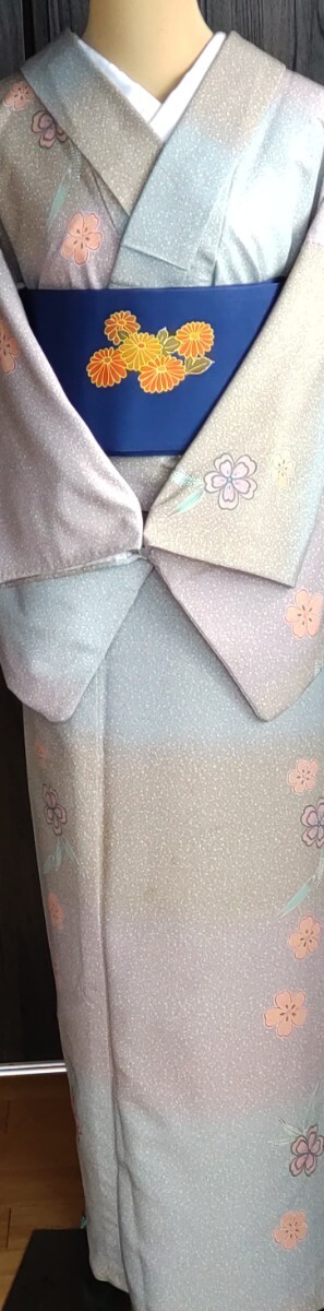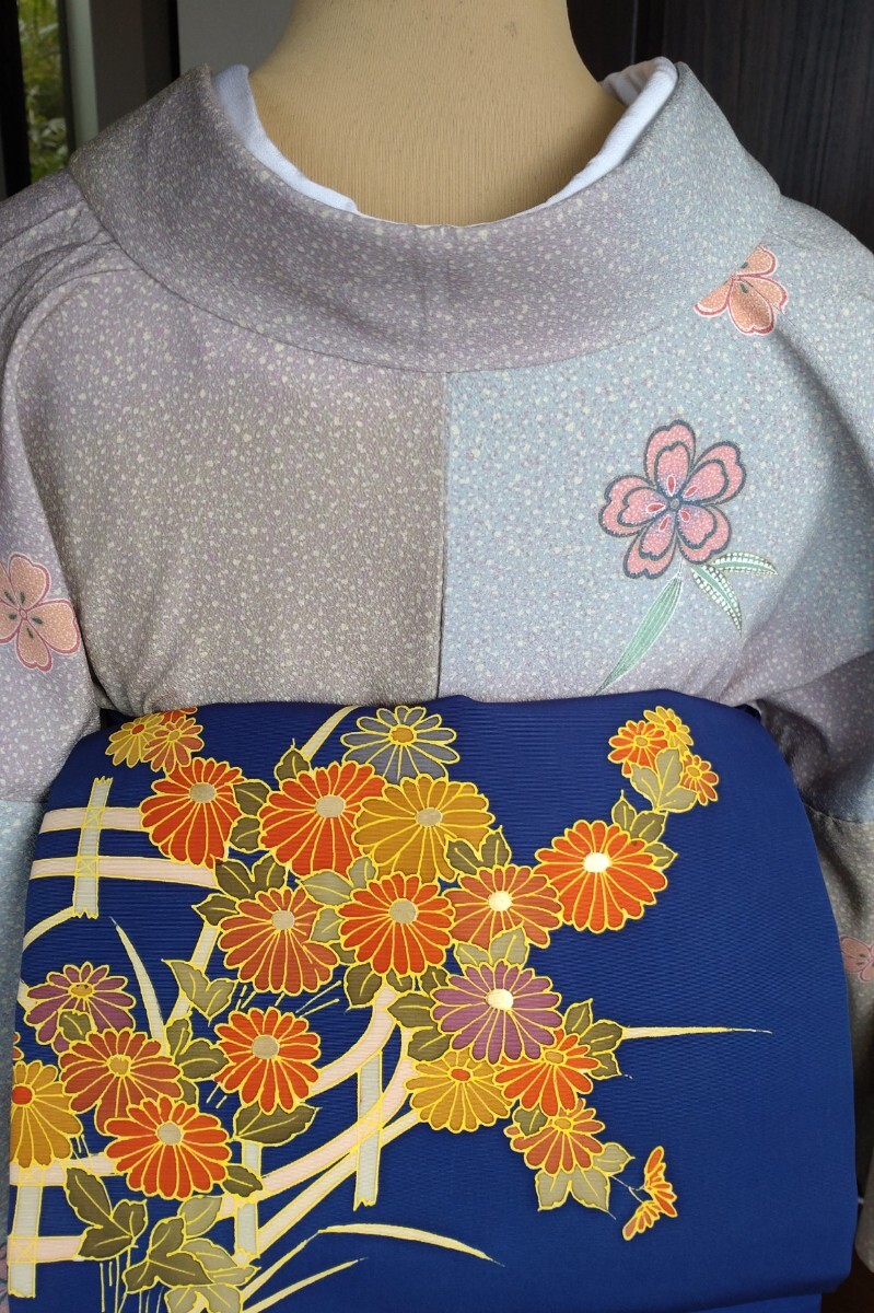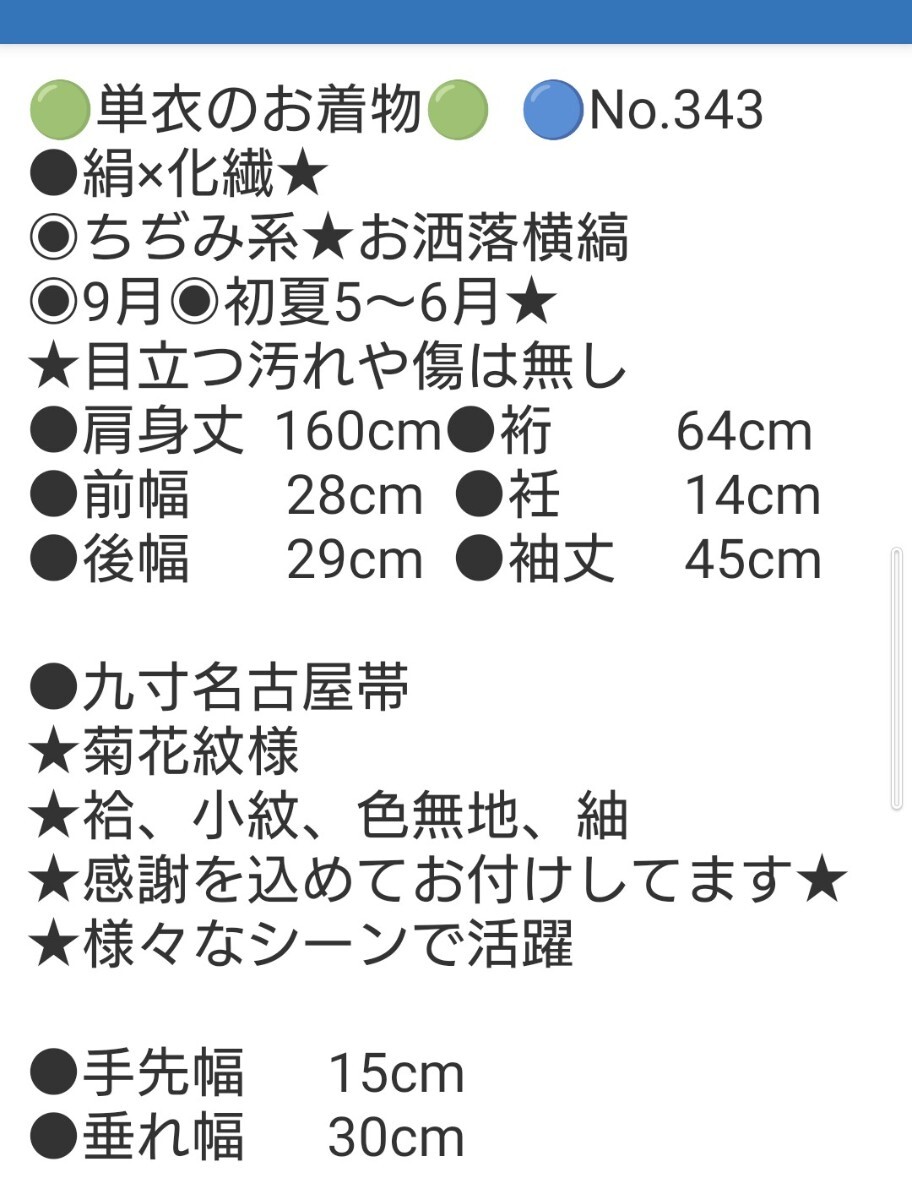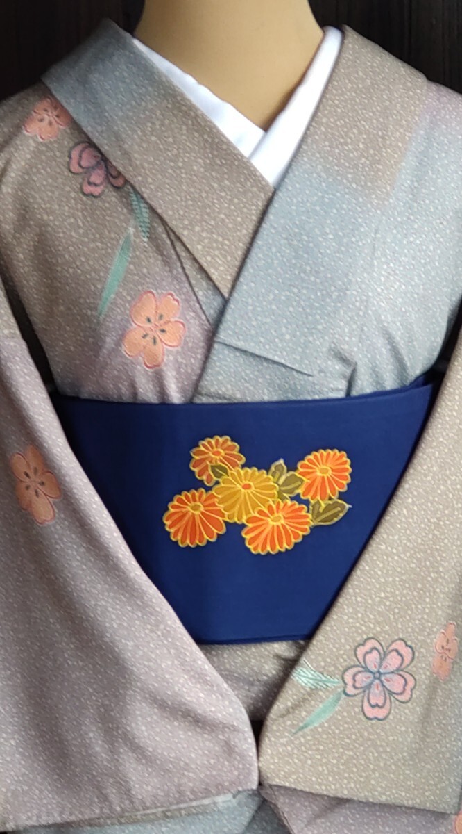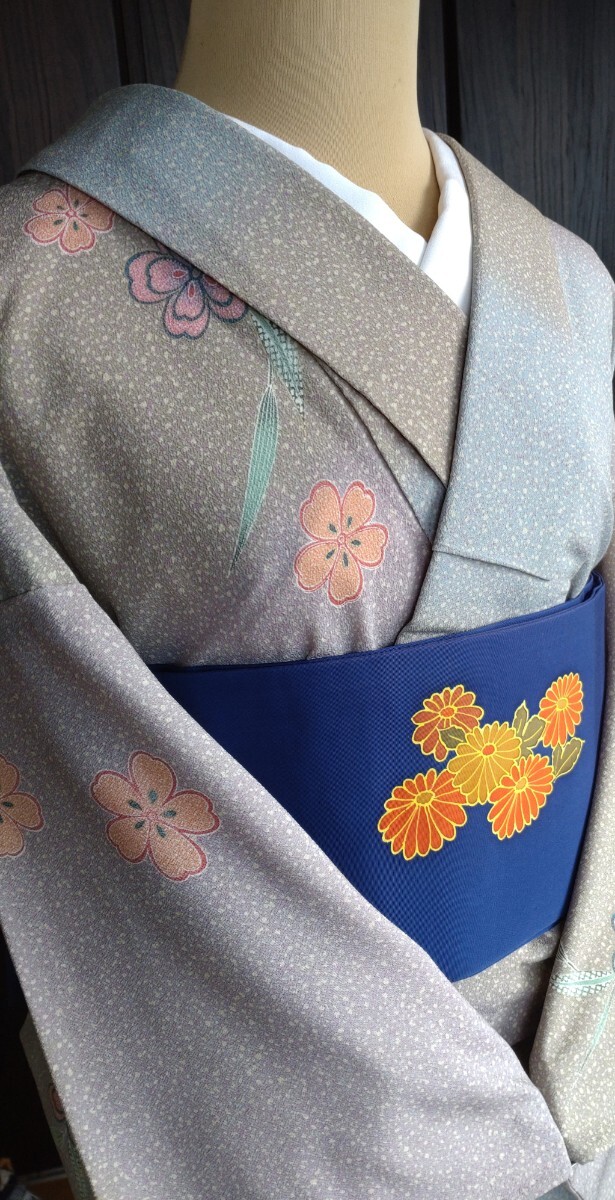 ●●夜桜●●単衣のお着物●化繊×絹●9月★5〜6月●お洒落小紋★バチ衿●九寸名古屋帯★菊花紋様は感謝としてお付けしてます●No343