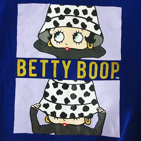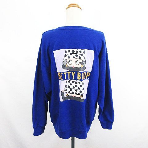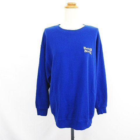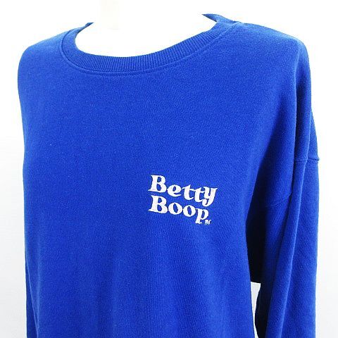 ベティブープ Betty Boop トレーナー スウェット 長袖 クルーネック ロゴ バックプリント オーバーサイズ M ブルー ※EKM レディース