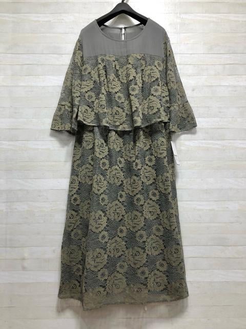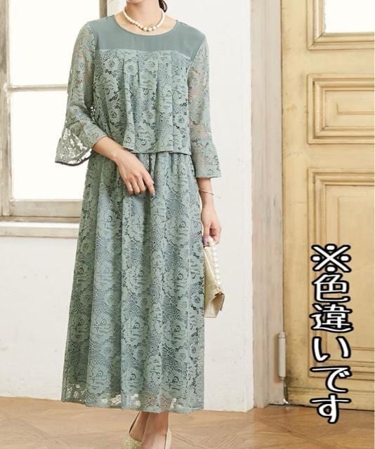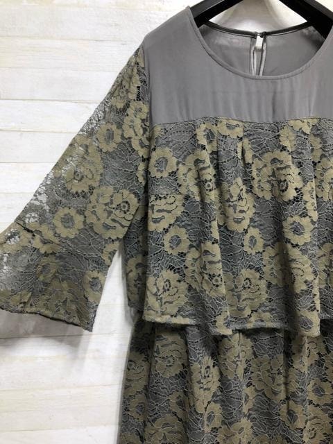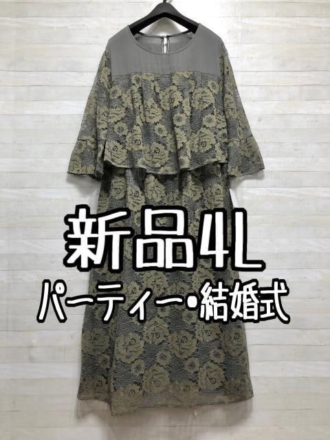 新品☆4Lくすみカラー♪レースデザイン♪重ね着風ワンピース♪パーティ☆A211