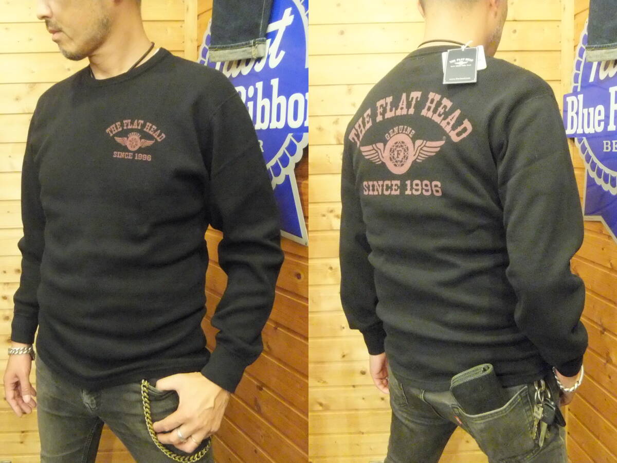 フラットヘッド正規店 FN-THL-203 毎年定番! 厚手サーマル生地=ワッフル生地の長袖Tシャツ[黒][38]新品が送料無料で!