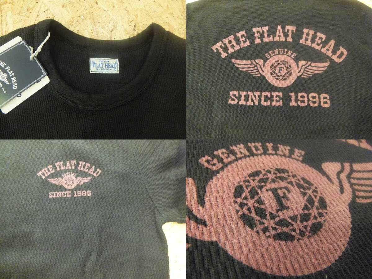 ・その他 : ◎ネック周りは、フラットヘッドのTシャツの特徴ともいえる、コダワリの3本ステッチ!!     ◎メーカーによる“製品洗い=ワンウォッシュ”済みです。⇒洗濯縮み等は、それほど気にしなくて大丈夫です。    ◎[保温性がある=Thermal=Warm=暖かい]という意味ですが、「生地の編み目が、食べ物のワッフルにも似ているので、[ワッフルTシャツ]と呼んでいるメーカーもある」という事を覚えておくと便利かと思われます。
