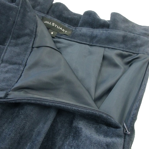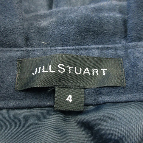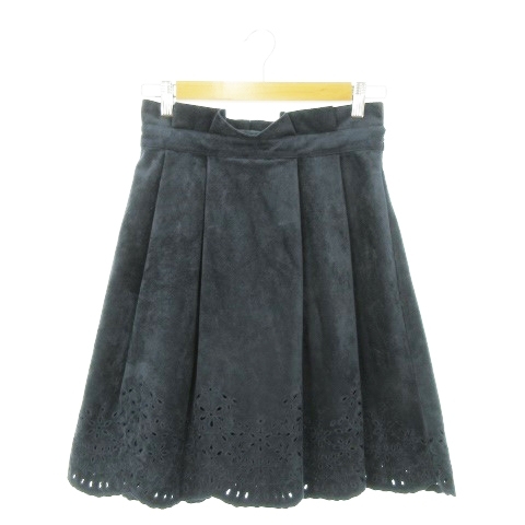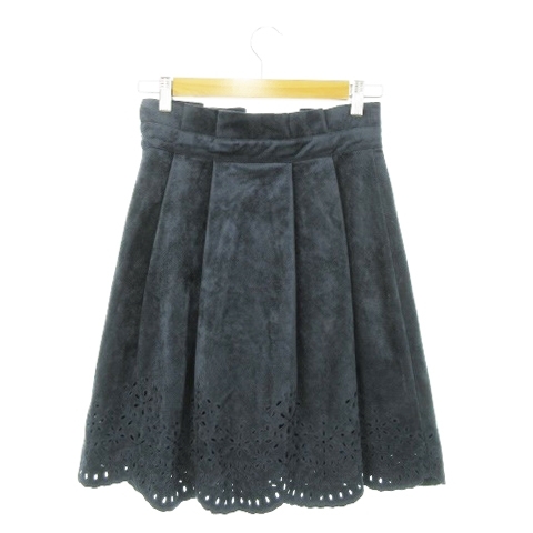 ジルスチュアート JILL STUART スカート フレア ミニ ハイウエスト フェイクスエード タック 光沢感 スカラップ 花 カットワーク 刺繍 4 紺