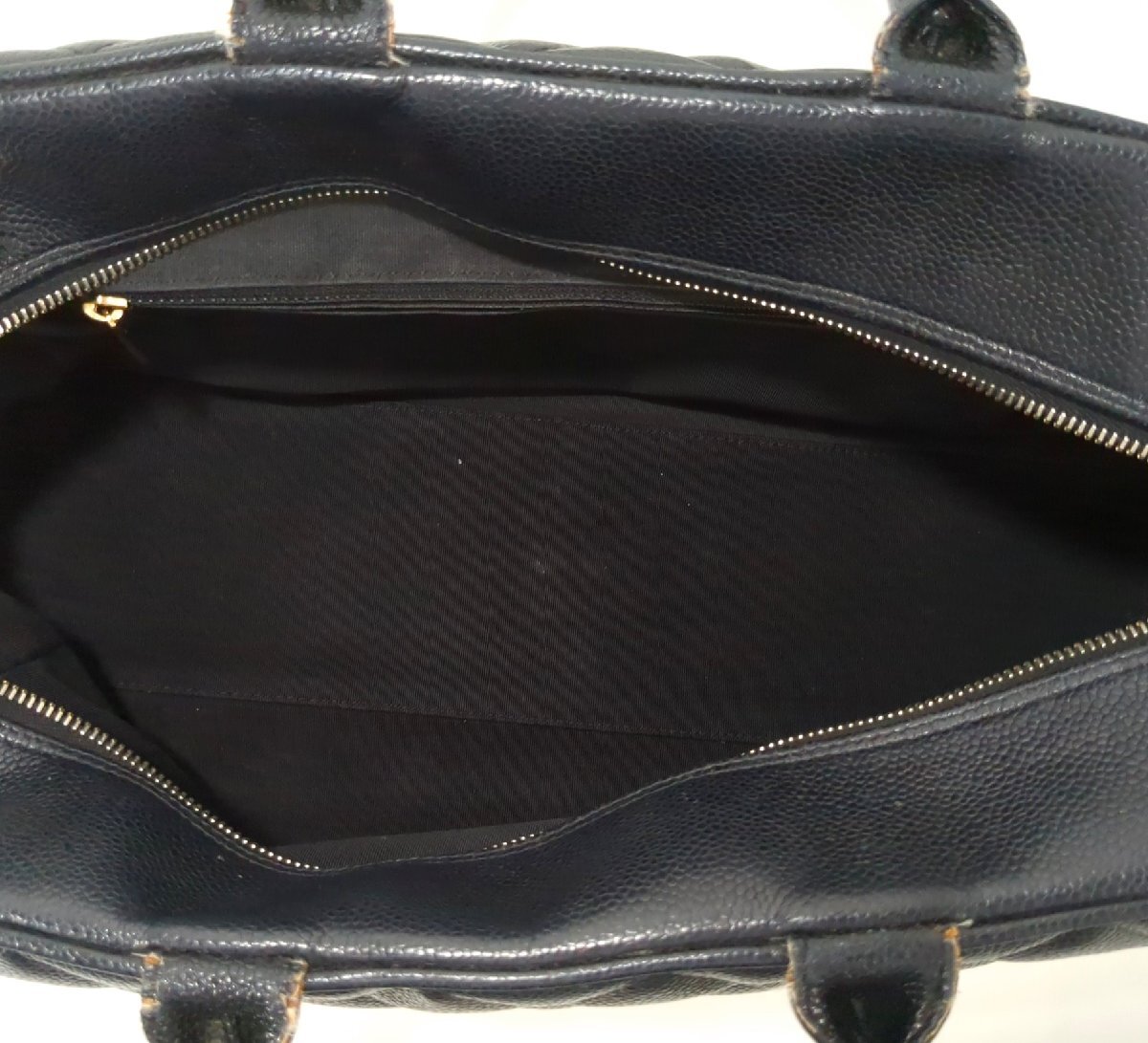 ■【状態ランク】 BC ■【サイズ】 W:約37cm H:約18cm D:約13cm ■【内ポケット】 1箇所あり ■【外ポケット】 1箇所あり ■【付属品】 カードあり ■【状 態】 内側、ヨゴレが多々あり経年劣化、使用感あります 外側、取っ手付け根が経年劣化あり、取っ手がピンと立たずしおれます。底面角の4スミが6枚目写真のようにむき出しになっています。全体的に経年劣化、使用感あります 詳しくは写真ご参照下さいませ ※シャネル定番のおしゃれバッグでオススメです ※中古品にて基本的にノークレームノーリターンでお願い致します |
