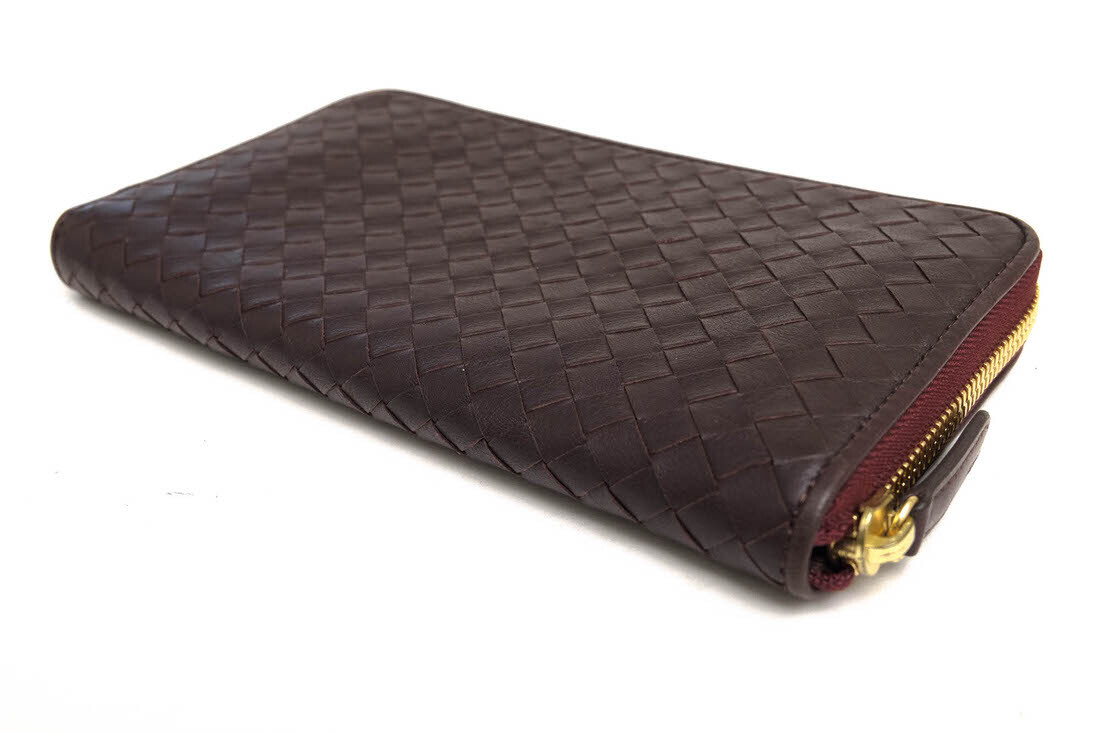 | ハイクオリティな存在感で大人を魅了する「knitting(ニッティング)」シリーズ。レザーメッシュを構成する革は、しっとり優しく、ふわっとしなやかに仕上げられた「ソフトエクスプレッシブレザー」。柔らかく鞣した牛革を回転ドラムで揉みほぐして自然なしわ模様や染めムラなどをつけているため、豊かな表情と品のある風合いを併せ持っています。内装にはゴートスキン(山羊革)とコットンとレーヨンの混合生地を使用。端正なロングフォルムの中には、数々の収納機能を整然とレイアウト。大量の紙幣カード硬貨をスマートに収納します。また、コの字型のファスナーが全体をスリムに引き締め、丁寧に組み上げられた網目の陰影が豊かな表情と気品を産み出しているので、クラッチのように持ってもエレガントな印象。 |
