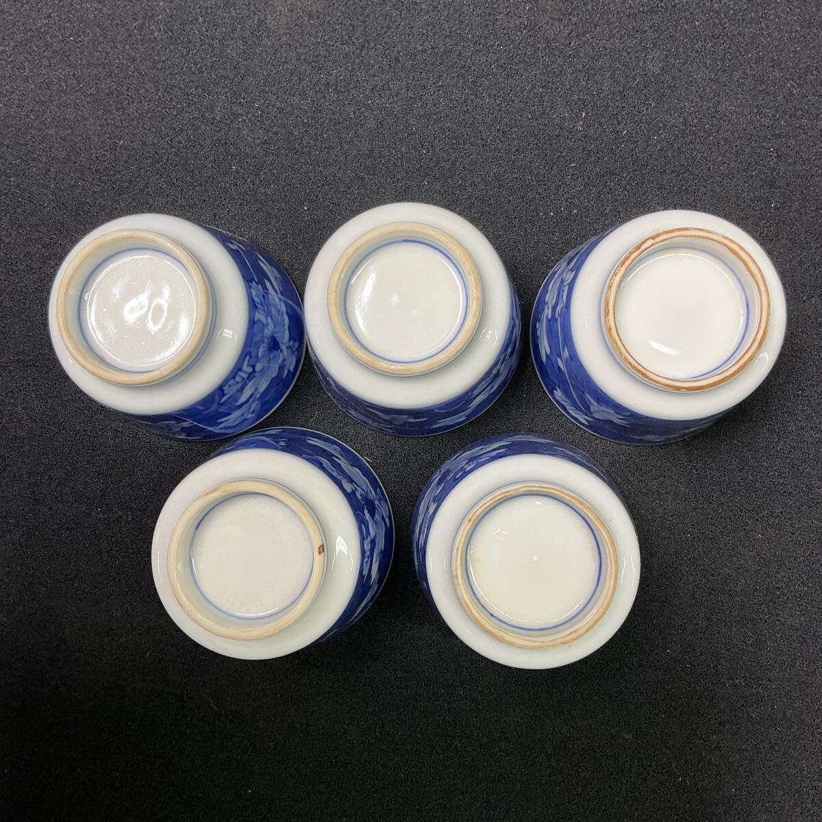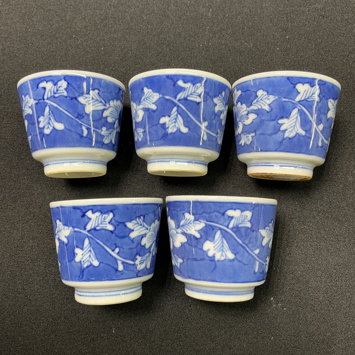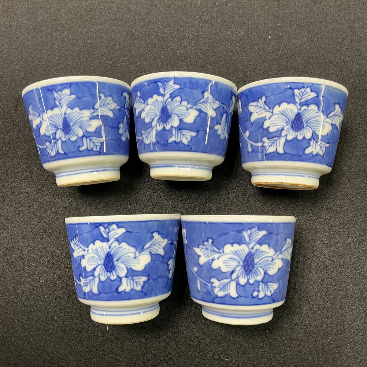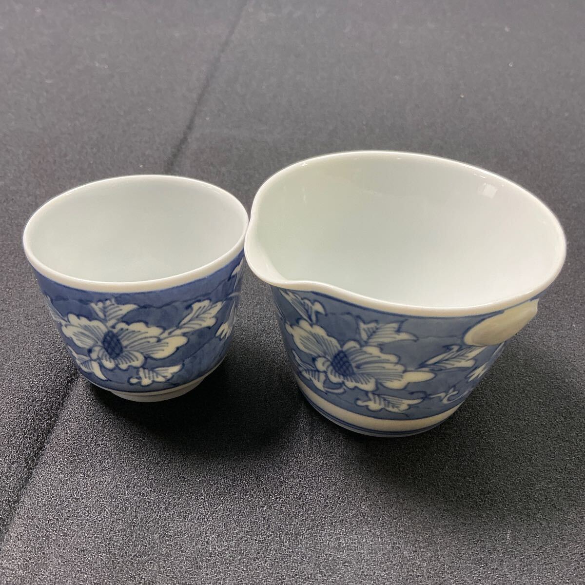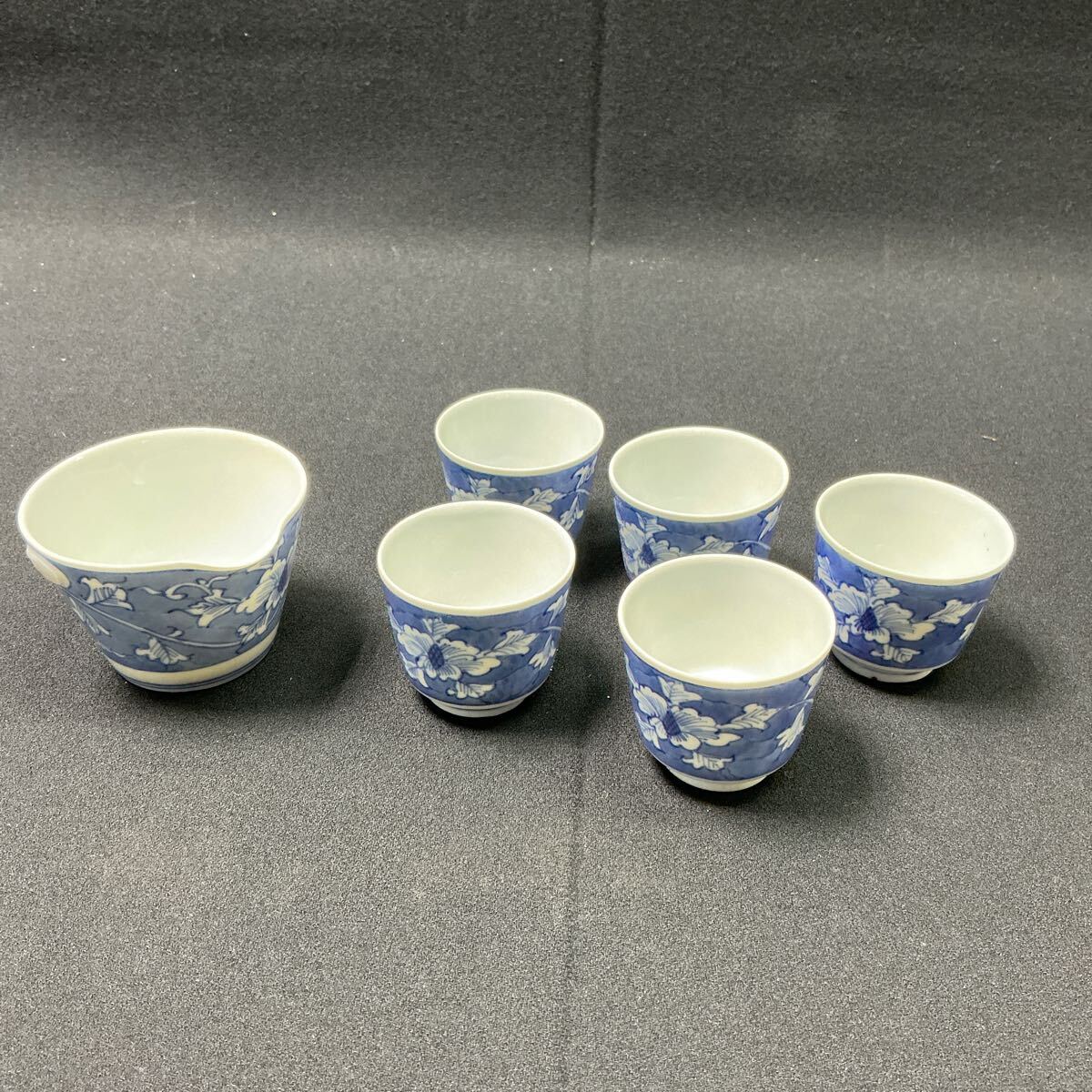 出石焼 染付 牡丹図 煎茶 茶器 6点です。