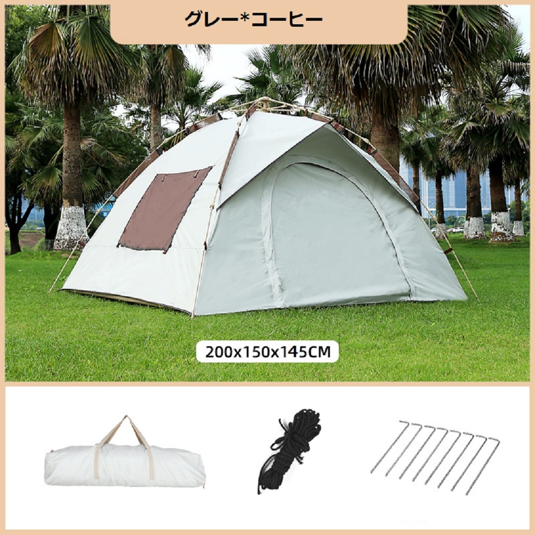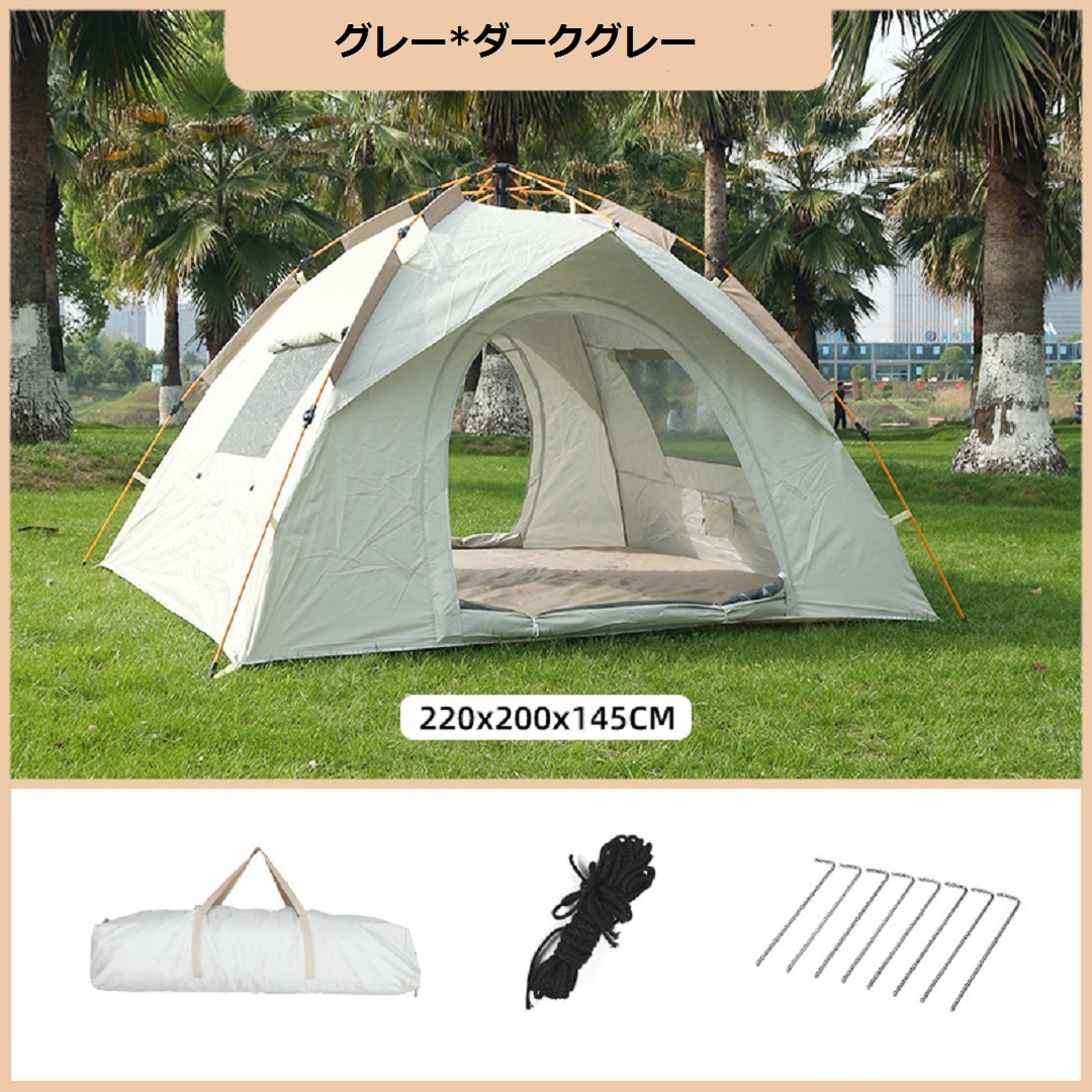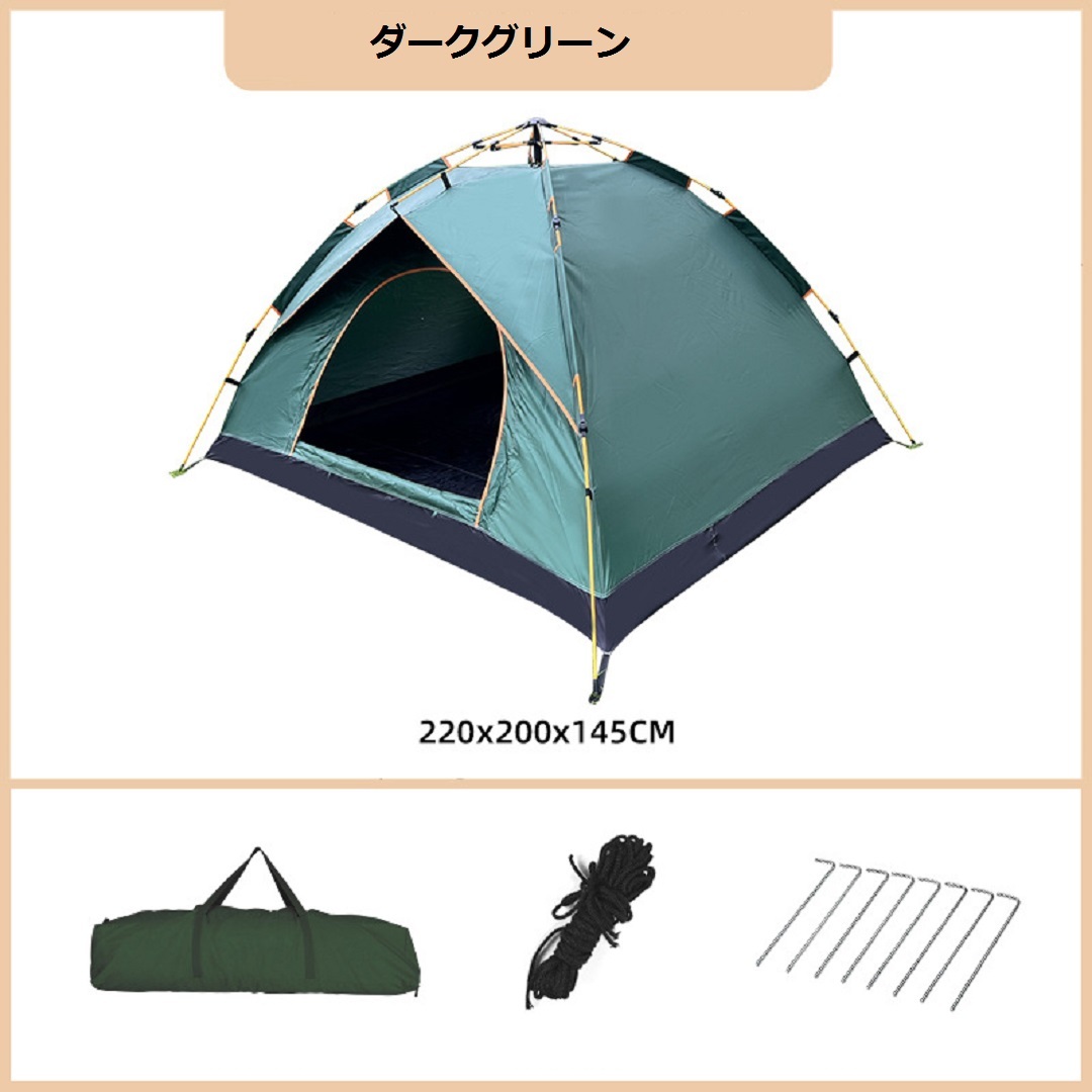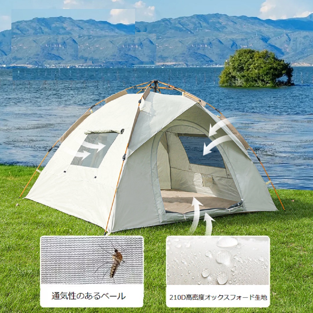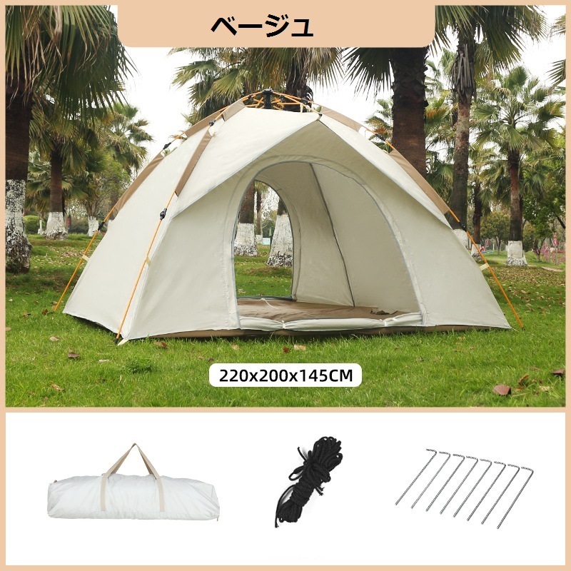 テント ポップアップテントワンタッチテント幅220cm簡単セット軽量 コンパクトアウトドアキャンプ3-4人用ベージュ