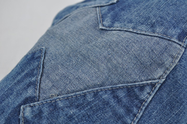 縦落ちライトオンスデニムに強い目のウォッシュ可能が施されて