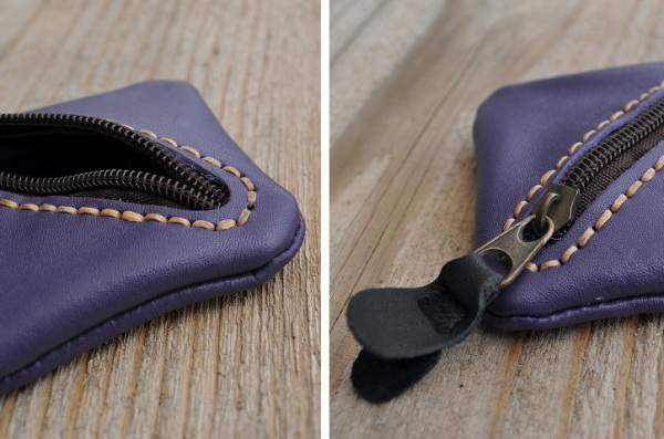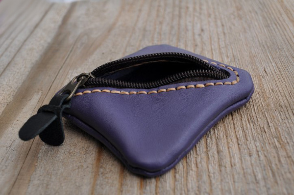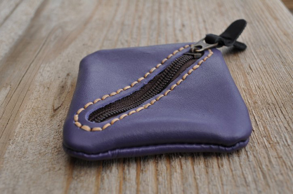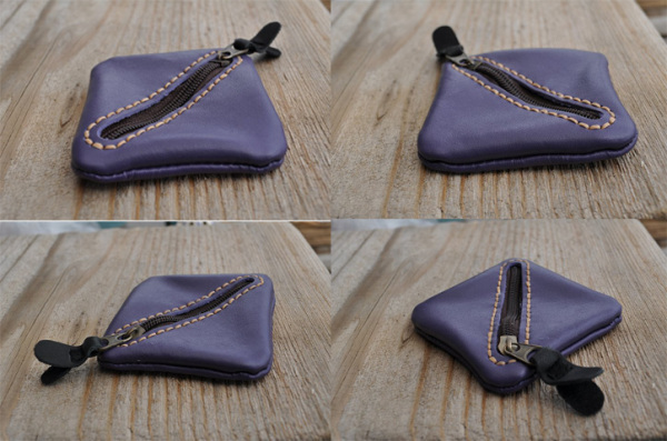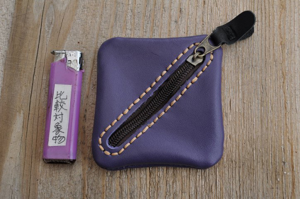 ハンドメイドレザースクエアージップポーチパープル本牛革新品